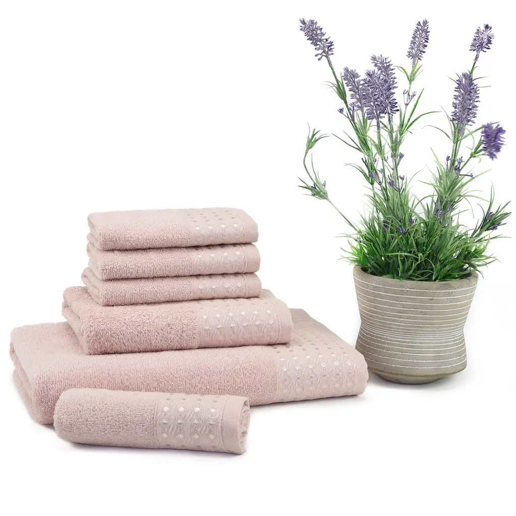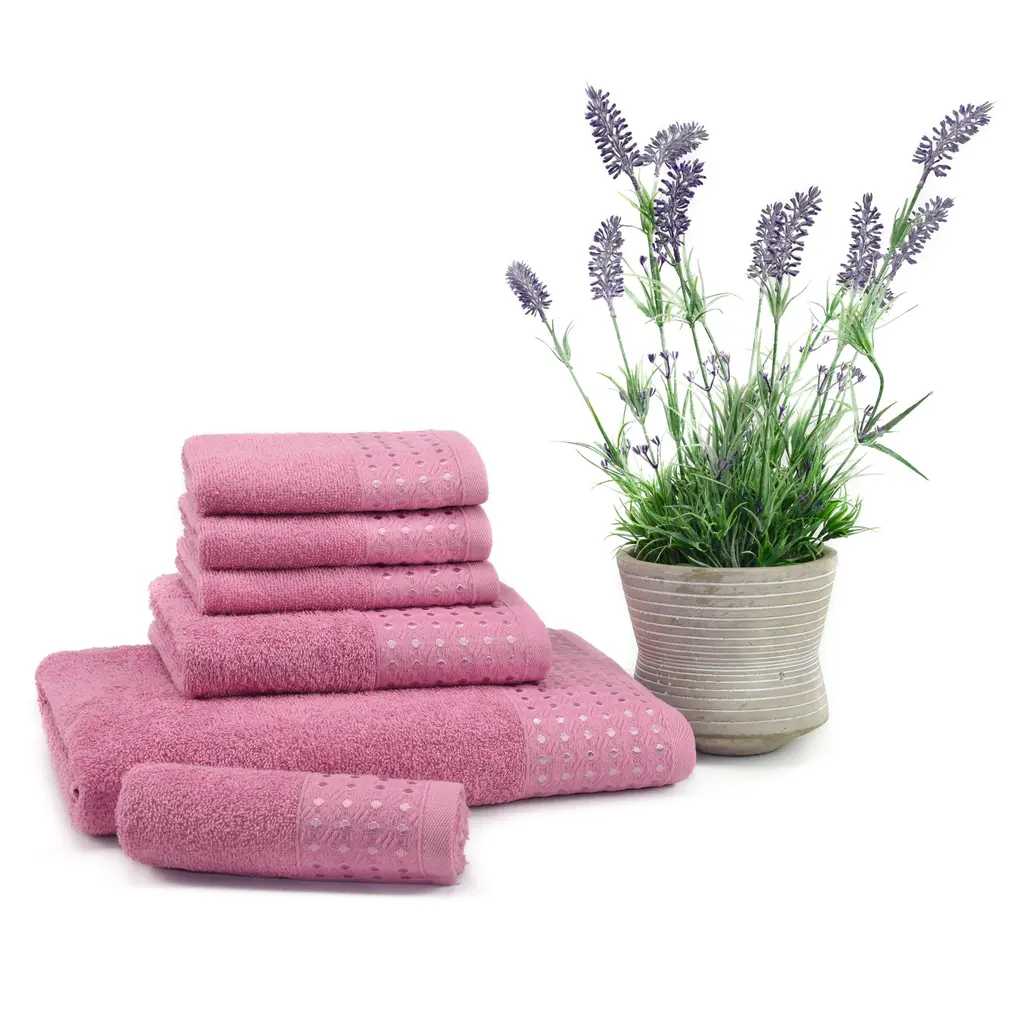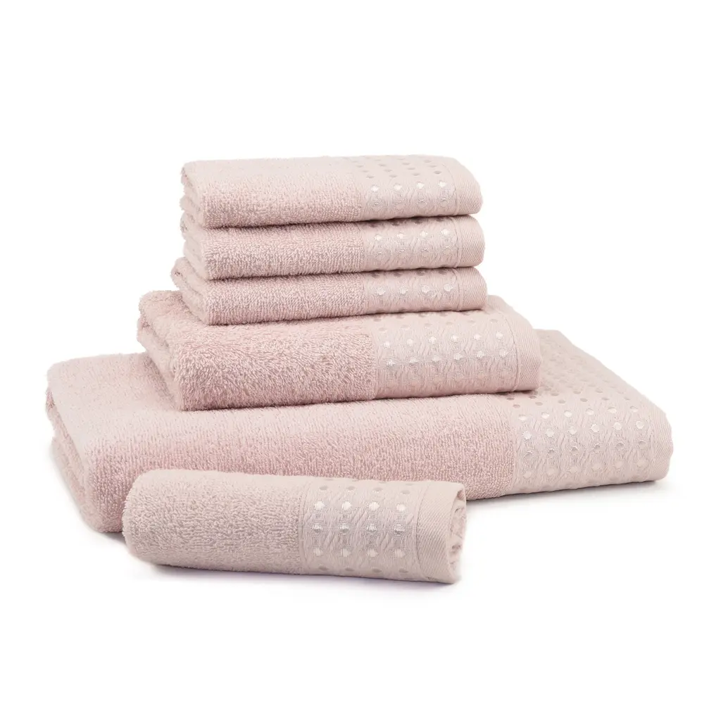 East'n Blue Petek Turkish Cotton Bath Towel Set (Set Of 6) - (1 Bath Towel, 1 Hand Towel, 4 Washcloth) - Blush
