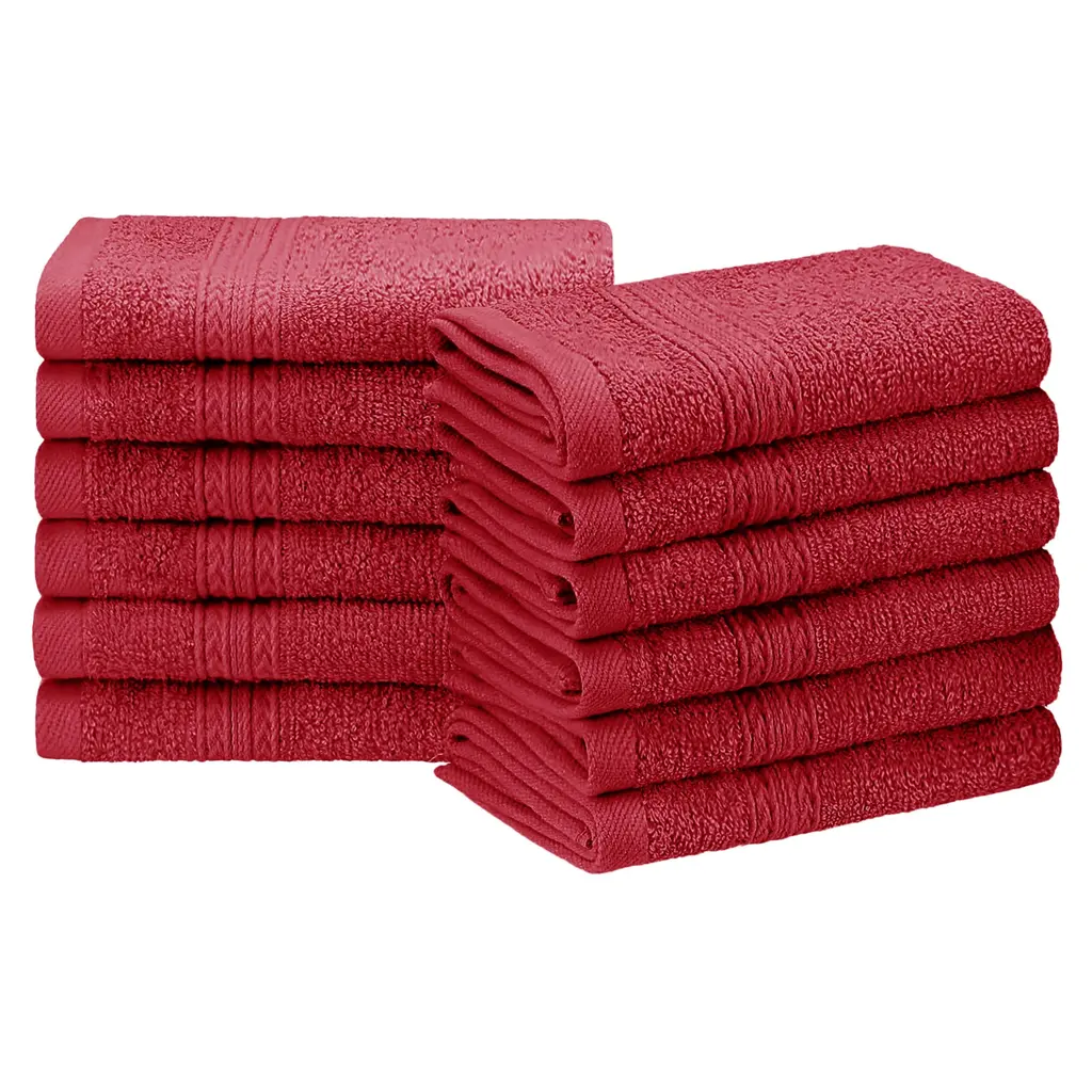 Eco-Friendly Sustainable Cotton Washcloth By Superior (Set Of 12) - Cranberry