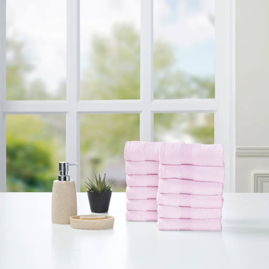 Fabstyles Premium Face Towels Washcloth Set Of 12 - 14x14 - Blush