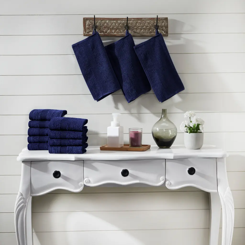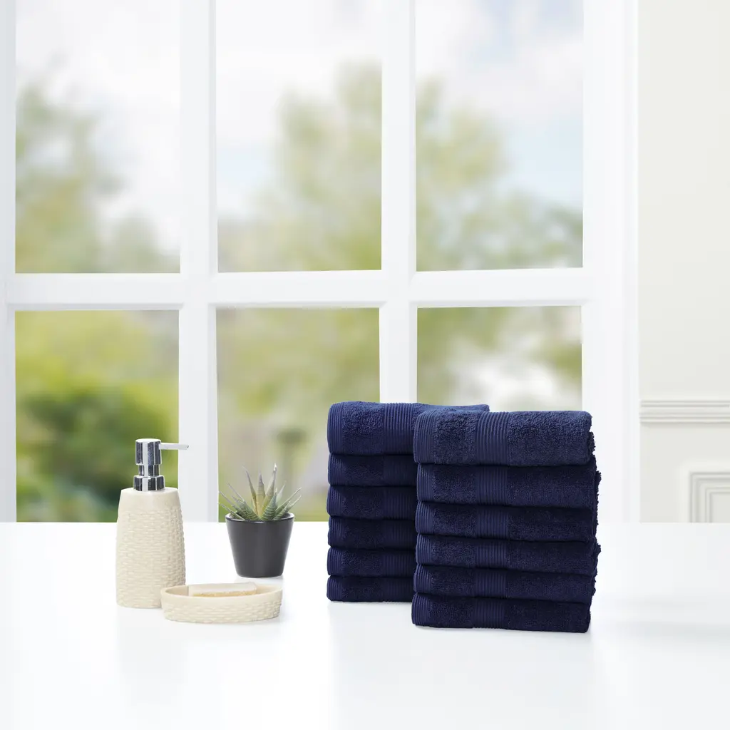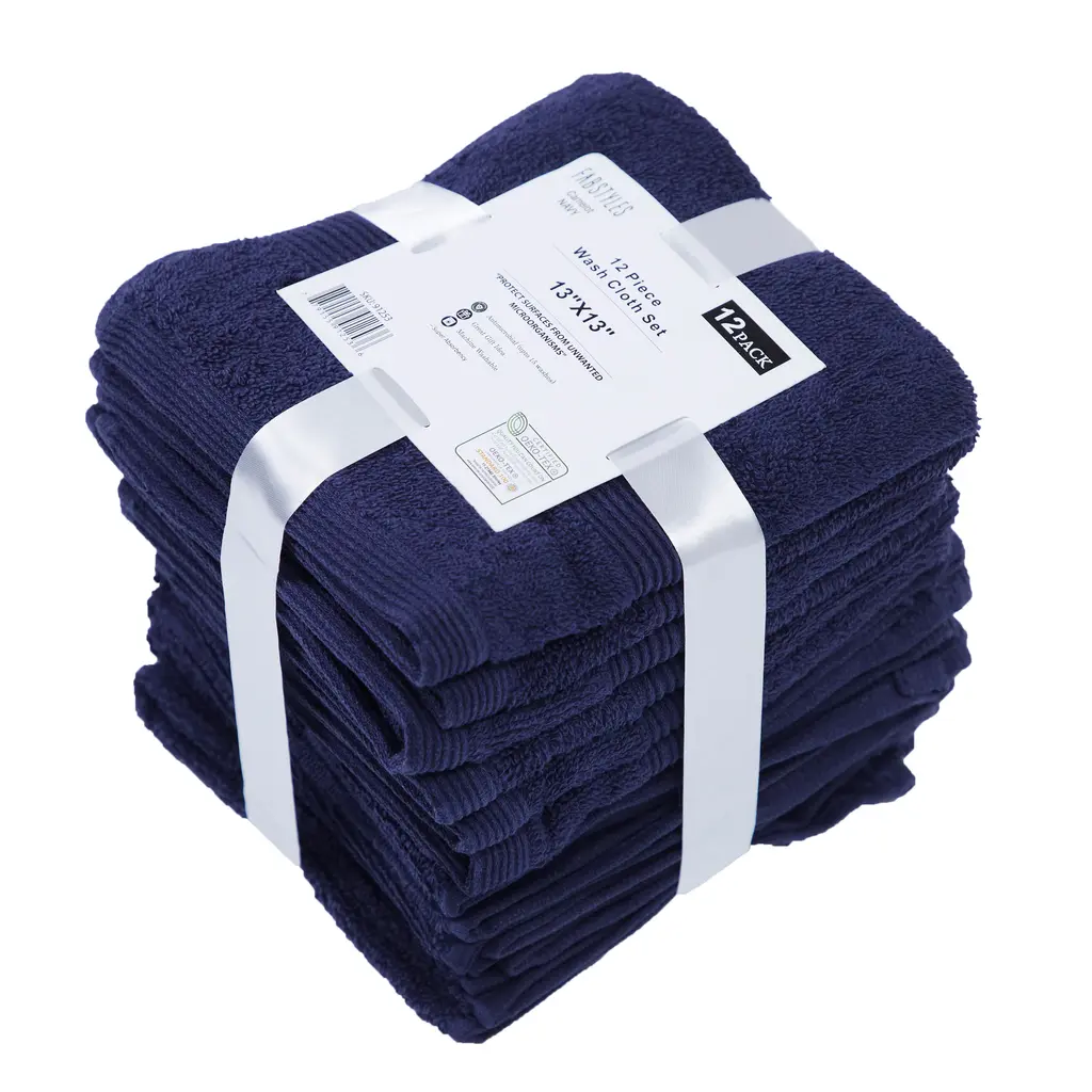 Fabstyles Premium Face Towels Washcloth Set Of 12 - 14x14 - Navy