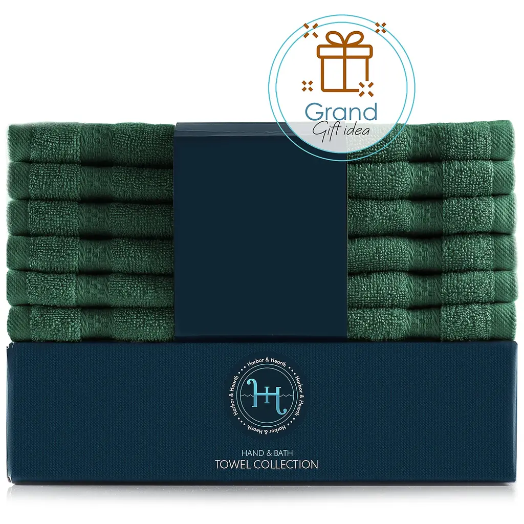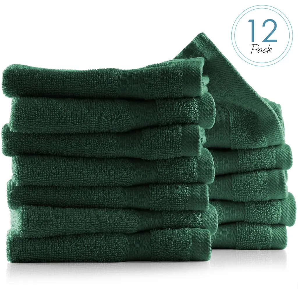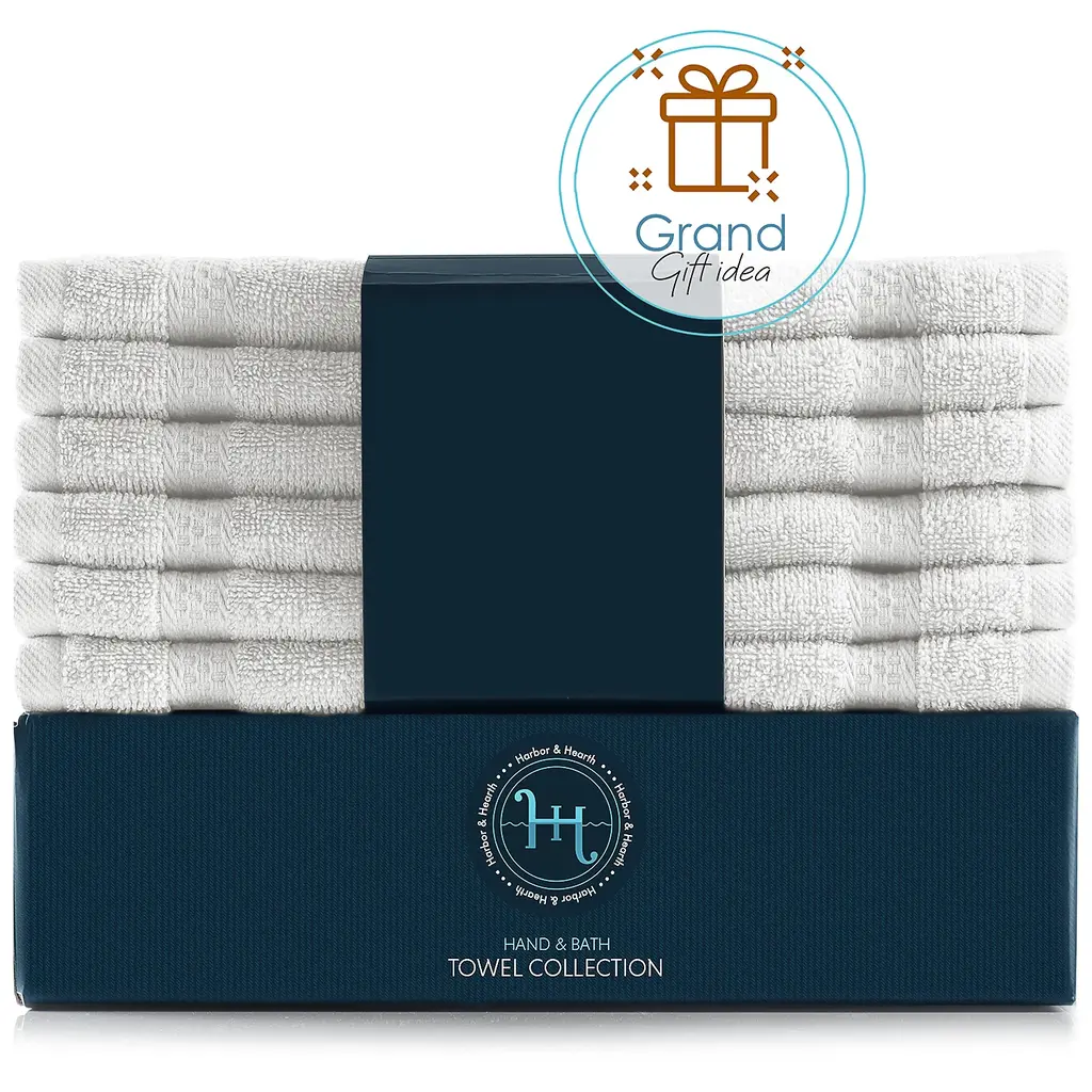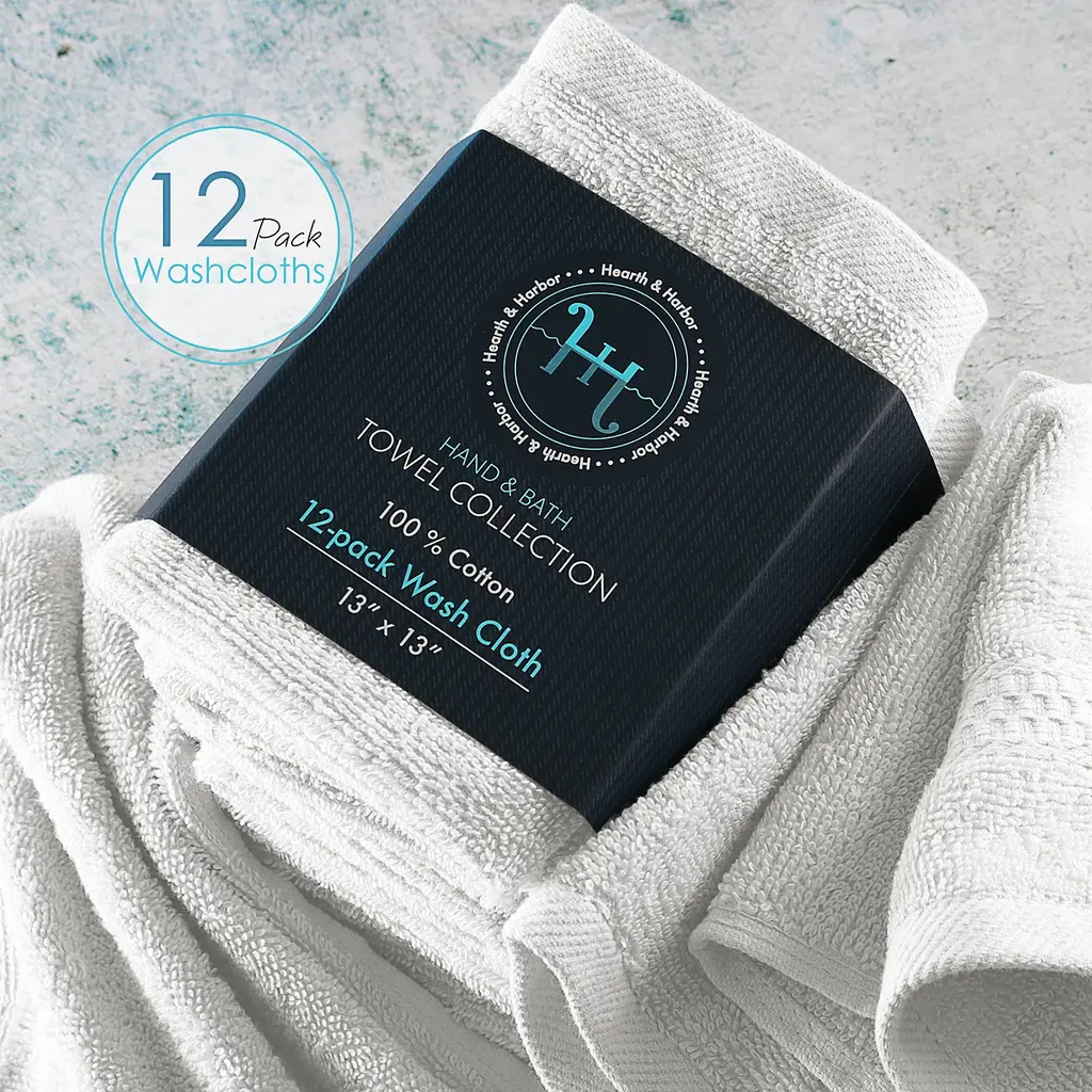 100% COMBED COTTON TOWELSHearth & Harbor's washcloths are made of premium quality cotton that has a luxurious feel and are exceptionally durable.HIGHLY ABSORBENT 500 GSM TOWELSThese 500GSM cotton wash cloth towels have a dense consistency and rich texture, which render them highly absorbent.A COMPLETE SET FOR YOUR BATHROOMThis bath washcloth set includes 12 multipurpose wash cloths. The cotton towels measure 13 inches x 13 inches.EASY CARE & CLEANINGMachine washable in warm water and tumble dry on low. Fade, stain, shrink and wrinkle resistant. The cotton towels will maintain their softness and color even after washing.Hearth & Harbor's towel collection is based on quality, elegance, and utility.