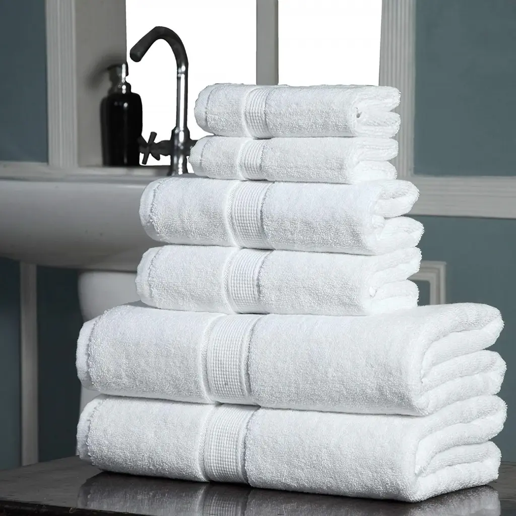 Luxurious 100% Cotton Absorbent 600 Gsm 6 Piece Bathroom Towel Set 2 Washcloths, 2 Hand Towels, 2 Bath Towels - White