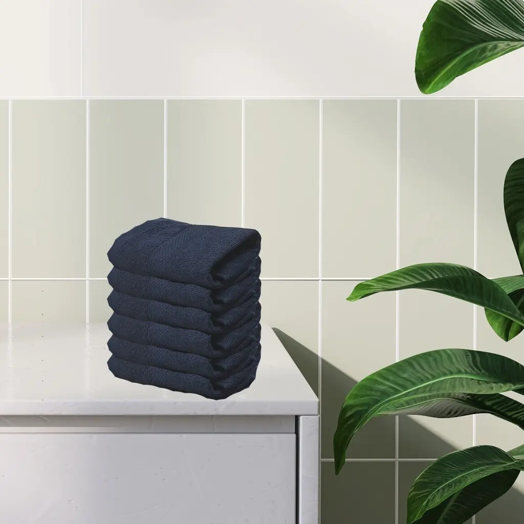 Nova Wash Cloth 12" X 12" Navy - Set Of 6 - Blue