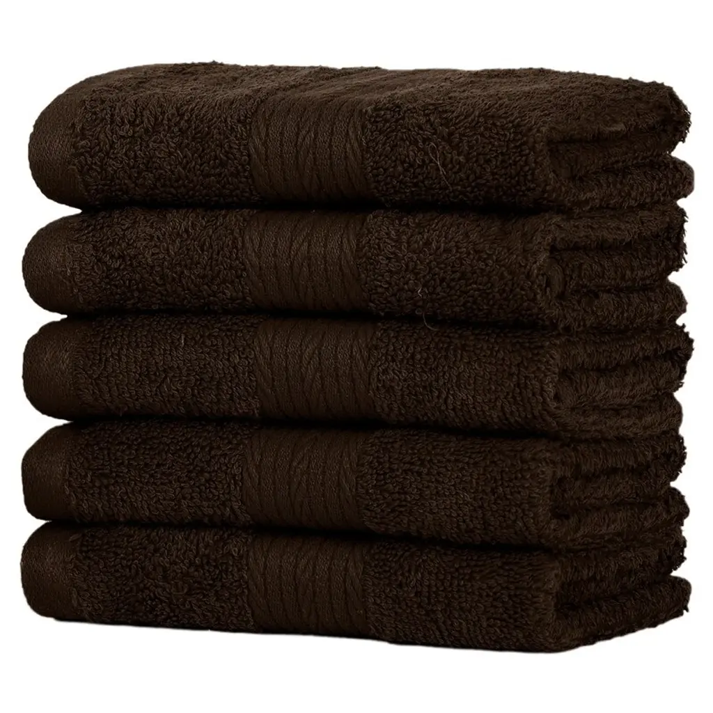 Pure Cotton 600 Gsm Absorbent Washcloths 12x12 Inch By Ample Decor - 5 Pcs - Brown