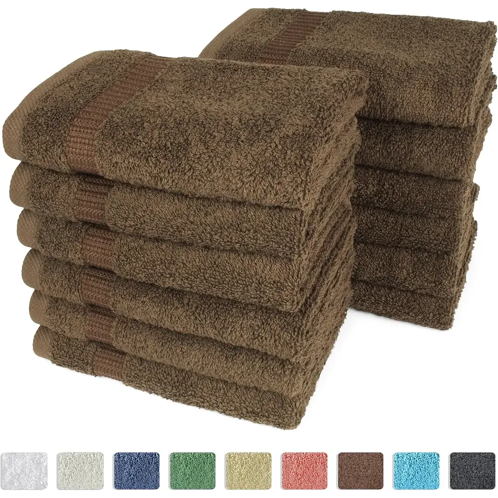 Royal Turkish Cotton Washcloth – Soft, Durable - Ultra-Absorbent Towels - Set Of 12 - Chocolate