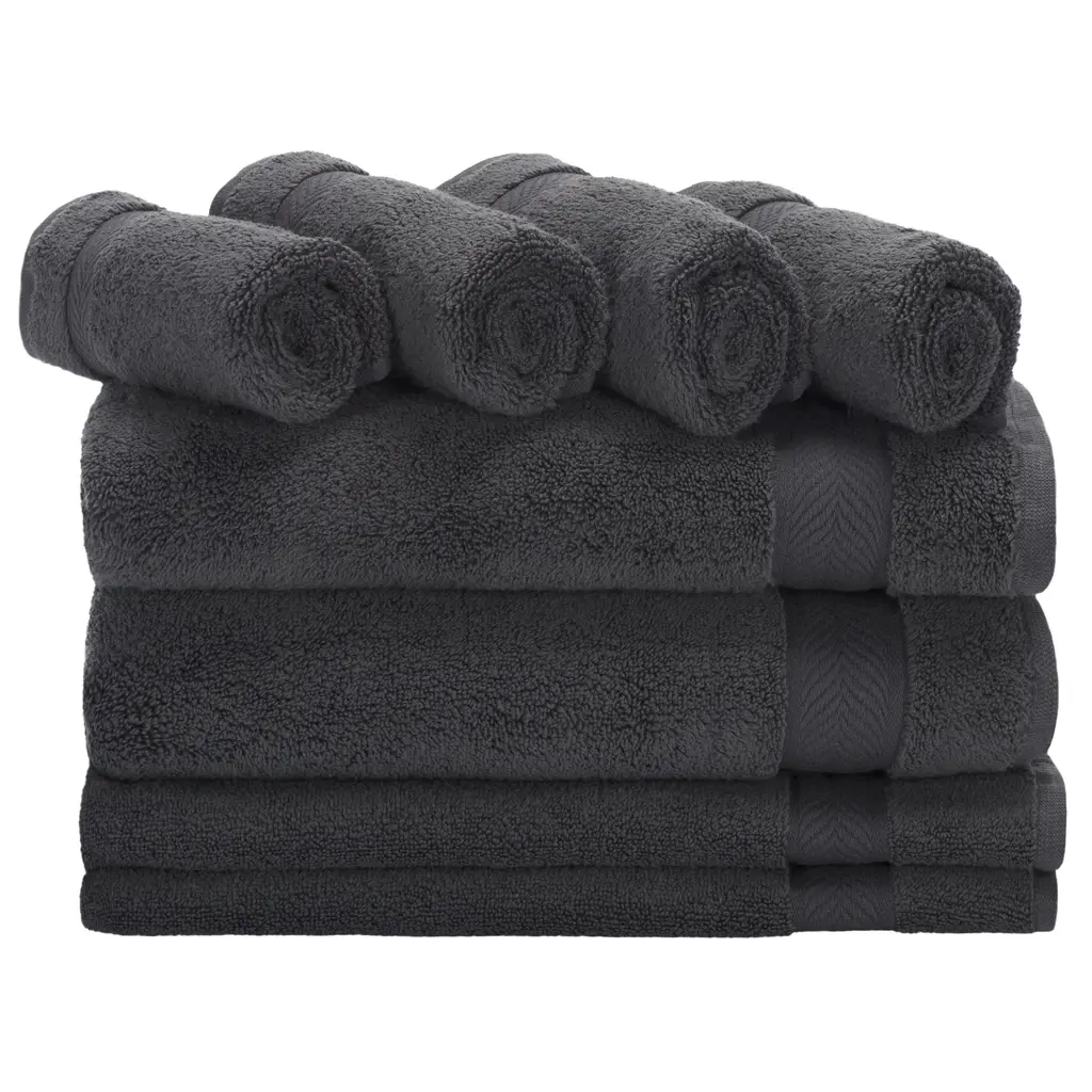 Safavieh Home Signature 8-Piece Towel Bundle - 2 Bath Towels 2 Hand Towels 4 Wash Cloths - Dark Grey
