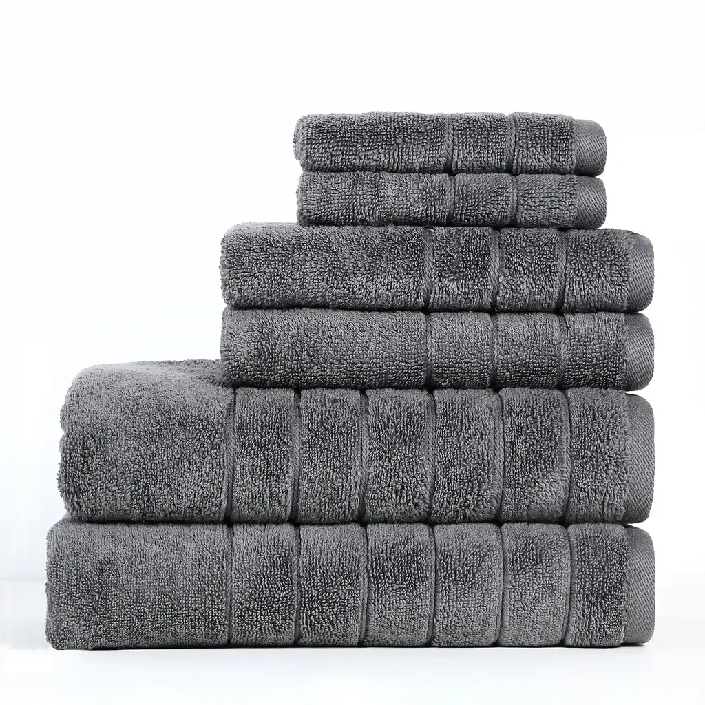 Superior Absorbent Zero Twist Cotton Bath Towel 6 Piece Set | 600 Gsm | 2 Washcloths, 2 Hand Towels, 2 Bath Towels - 27''x54'' - Grey