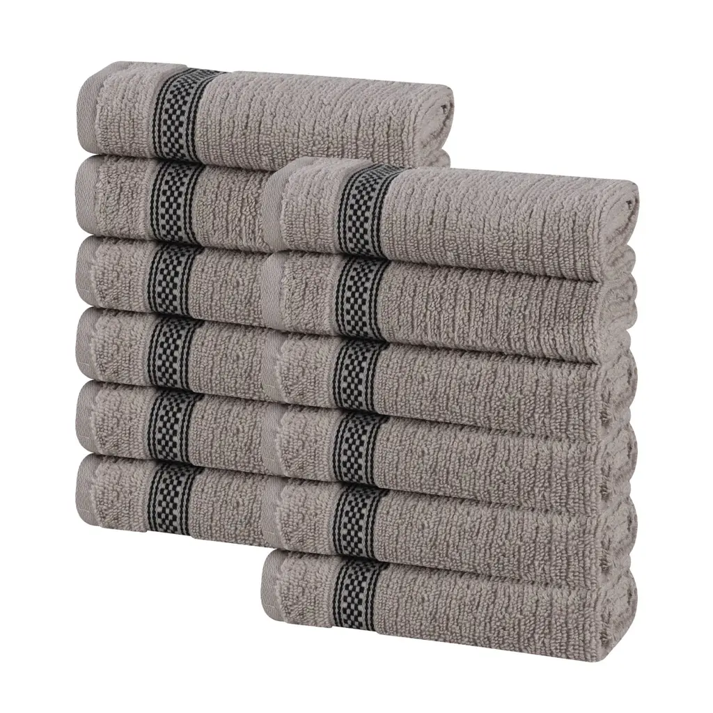 Superior Brea Zero Twist Cotton Ribbed Face Towel Washcloth Set Of 12 - Grey