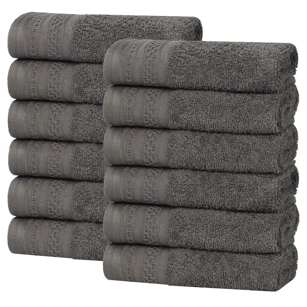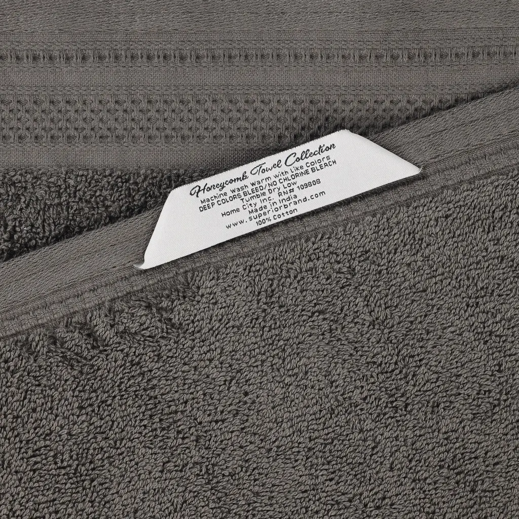 Superior Honeycomb Border Cotton Medium Weight Face Towels Washcloths, Set Of 12 - Gunmetal