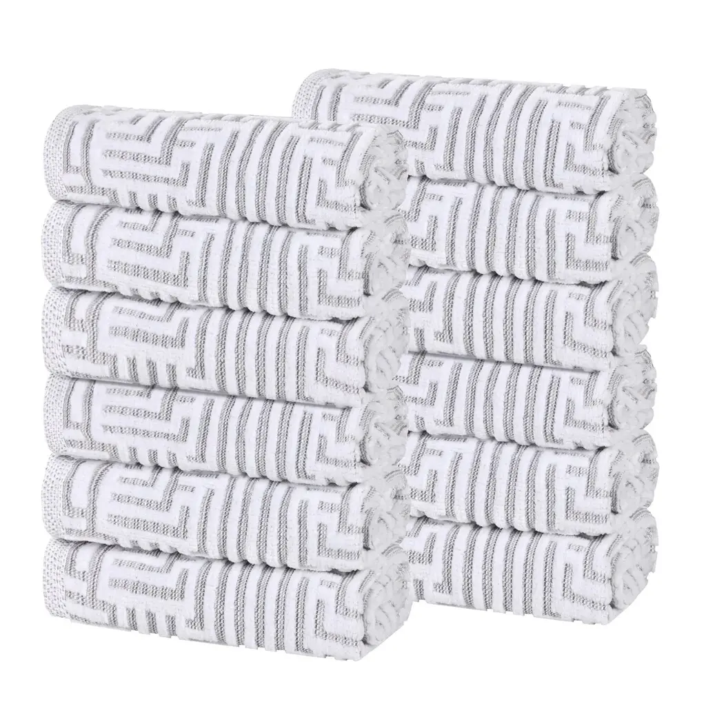 Superior Jasper Cotton Modern Jacquard Face Towel Washcloth Set Of 12 - Platinum
