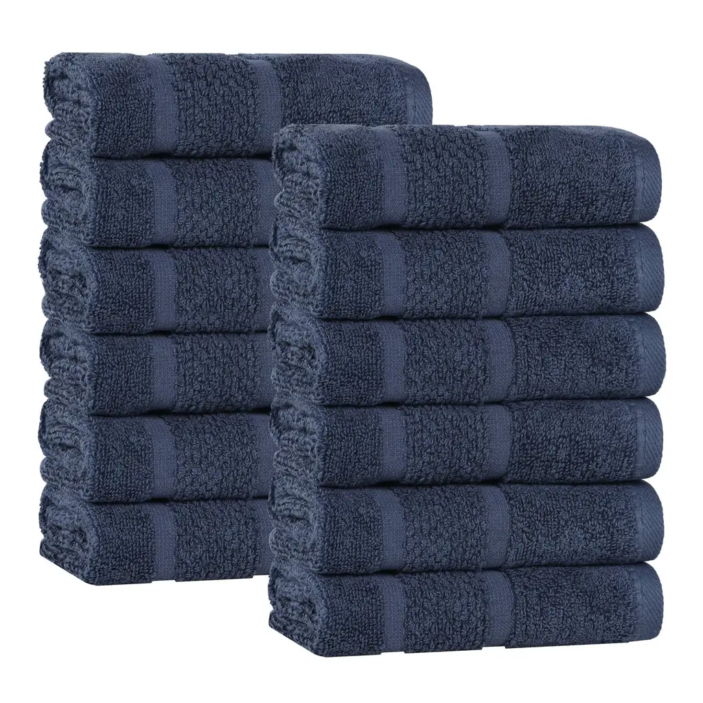 Superior Mile Smart Twist Viscose Cotton Blend Face Towels Washcloths, Set Of 12 - Navy Blue