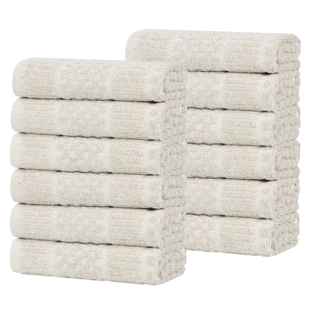 Superior Naples Viscose Cotton Blend Face Towels Washcloths, Set Of 12 - Beige