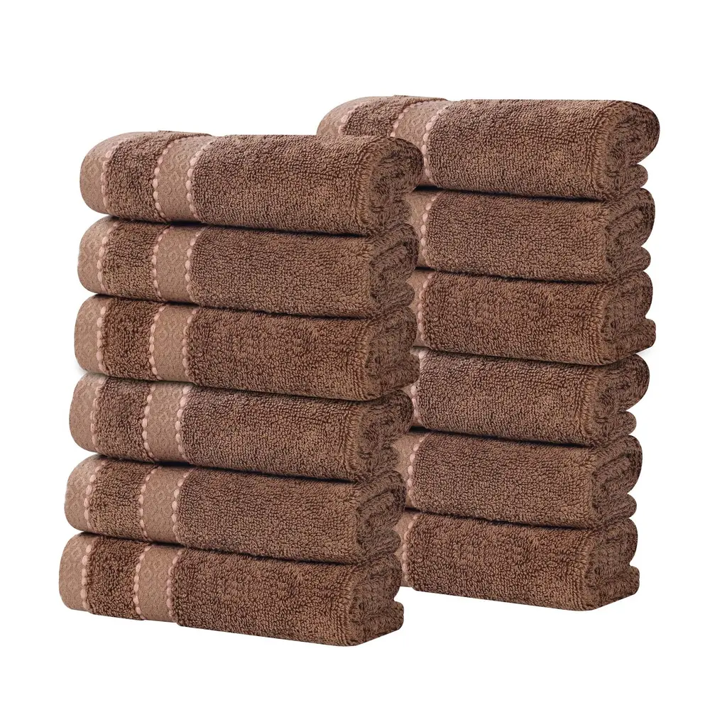 Superior Niles Cotton Ultra-Plush Absorbent Face Towel/washcloths, Set Of 12 - Chocolate