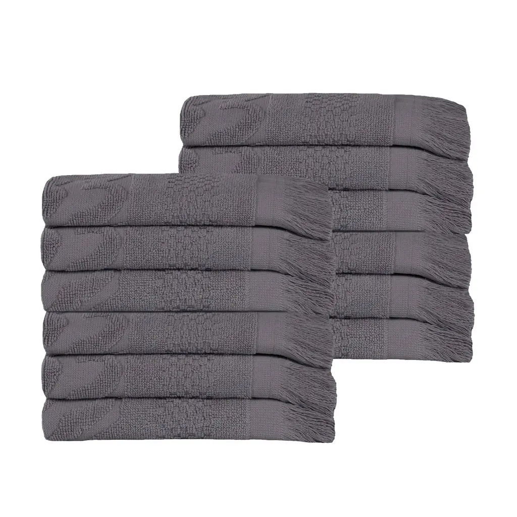 Superior Rolla Cotton Geometric Jacquard Face Towel Washcloth Set Of 12 - Grey
