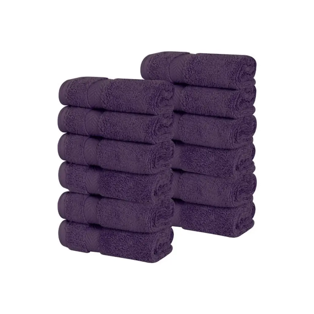 Superior Zero Twist Cotton Soft Absorbent Face Towel Washcloth Set Of 12 - Grape Seed