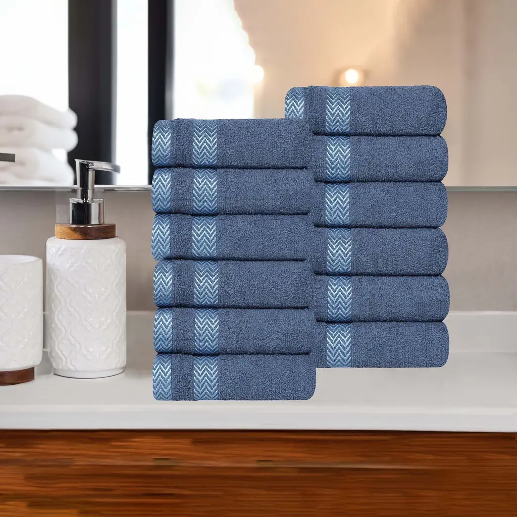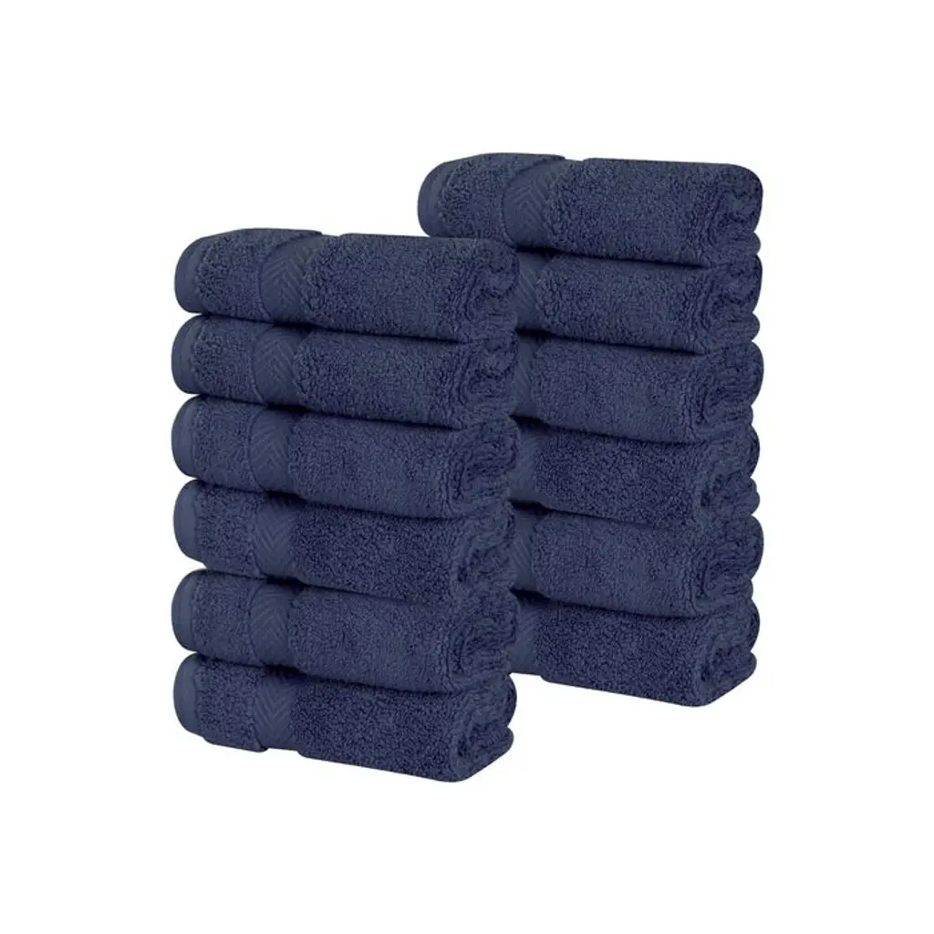 Superior Zero Twist Cotton Soft Absorbent Face Towel Washcloth Set Of 12 - Midnight Blue