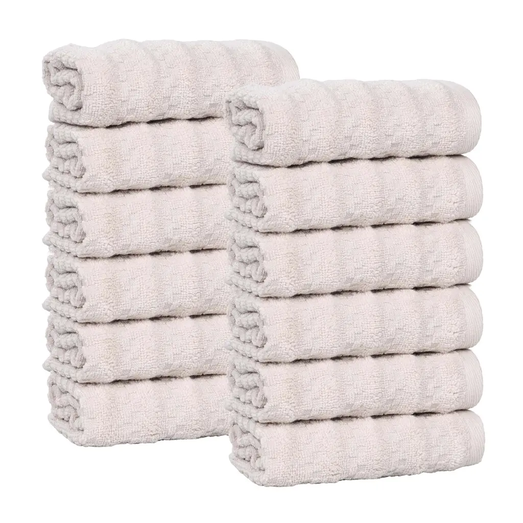 Superior Zuma Zero Twist Cotton Medium Weight Face Towels Washcloths, Set Of 12 - Silver