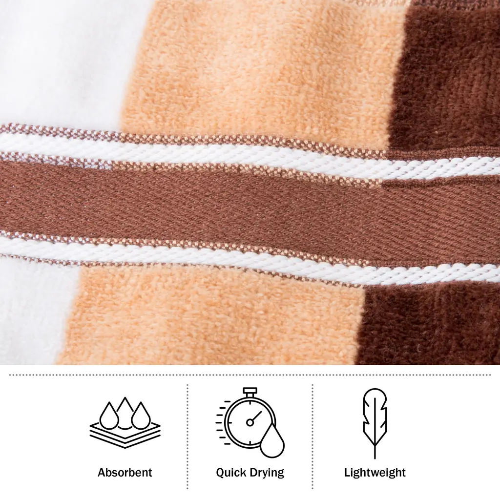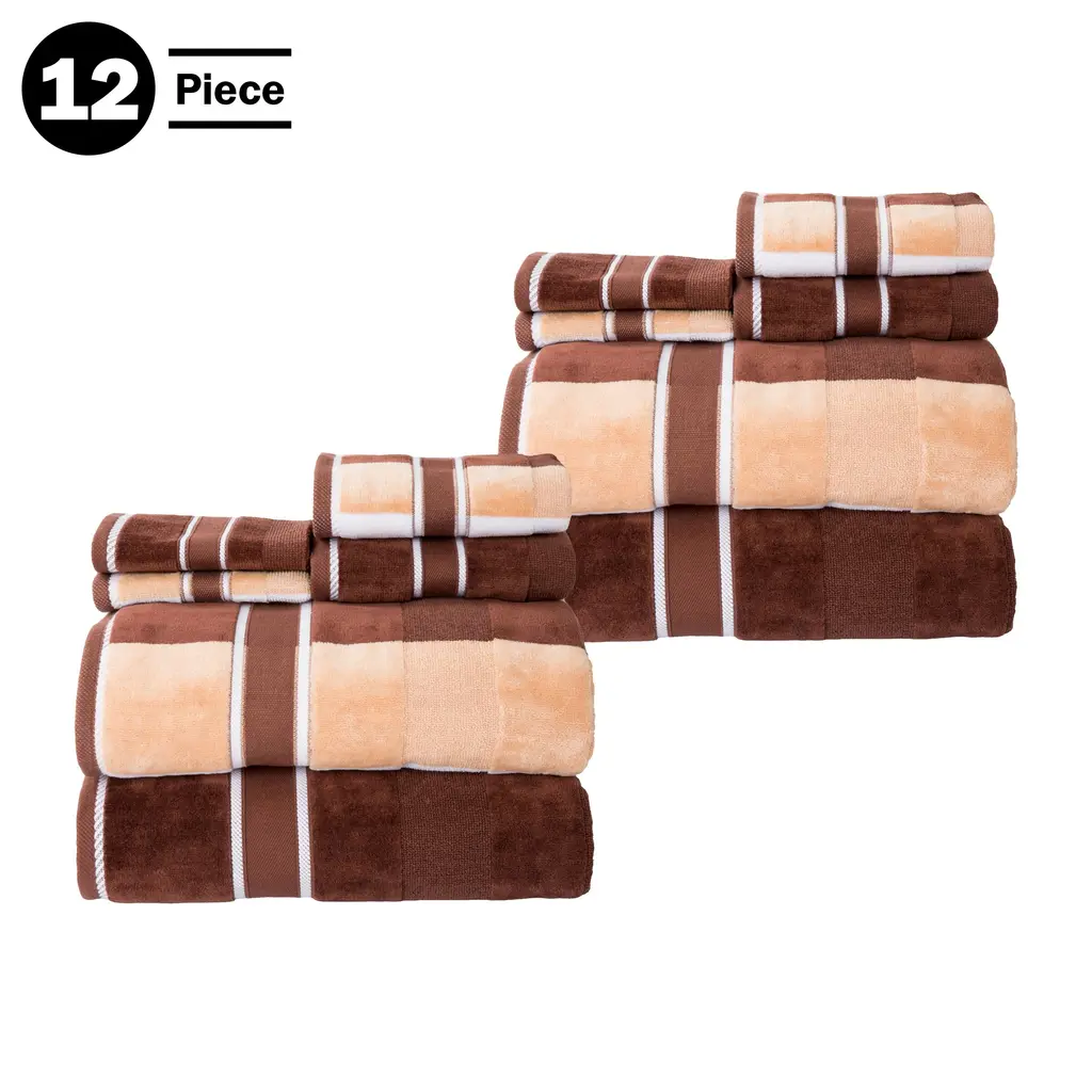 Towel Set With Bath Towels, Hand Towels, And Wash Cloths - Solid And Striped Towels By Lavish Home - Brown - 12-Piece