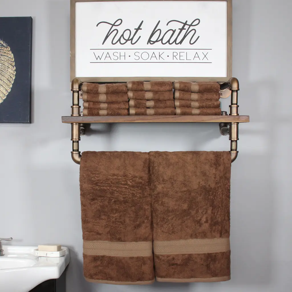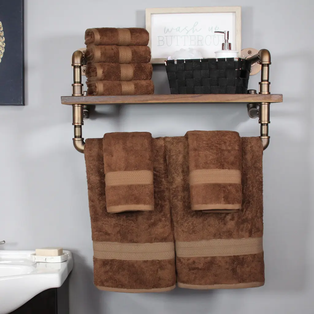 Bring spa quality luxury to the comfort of your own bathroom with the Bathroom Essentials by Lavish Home. These super soft and plush large bath towels are made from 100-percent cotton with a pleasing velour finish with a mix of striped and solid elegant designs, adding depth and texture to your bathroom’s color scheme that is visually appealing. The bath towels sets can be used in your primary, guest, and en suite bathroom for a cohesive look throughout your house or gift one of the towel sets as a wedding, housewarming, or back-to-school present for college students. BATH TOWEL SET - This bath towels set comes with bath towels, bathroom hand towels, and washcloths. These bathroom towels come equipped with an aesthetically pleasing velour finish for a luxurious after-shower or bath experience.ABSORBENT AND COMFORTABLE - Each towel in the bath towel set is made from low-twist loops for absorbency, while the two ply twisted yarn construction is used to increase the softness, for a comfortable and practical addition to your bathroom.MACHINE WASHABLE - This bathroom towel set is machine washable and dryable for your convenience — simply wash the cotton towels before the first use, machine wash warm with like colors, do not bleach, and tumble dry on low.ATTRACTIVE BATHROOM DÉCOR - These towels for bathroom feature a mix of striped and solid elegant designs, adding depth and texture to your bathroom’s color scheme that is not only soft but also visually appealing, ideal for your primary or guest bathroom.PRODUCT DETAILS - Materials: 100% Cotton. Dimensions: Bath Towel: (L) 54” x (W) 27”; Hand Towel: (L) 28” x (W) 16”; Washcloth: (L) 12” x (W) 12”.