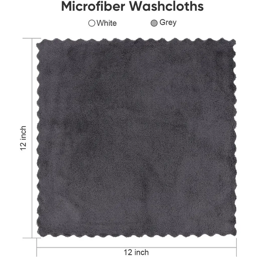 Ultra Soft Microfiber Washcloths 12 Pack - 12x12 Inches, Grey - Grey