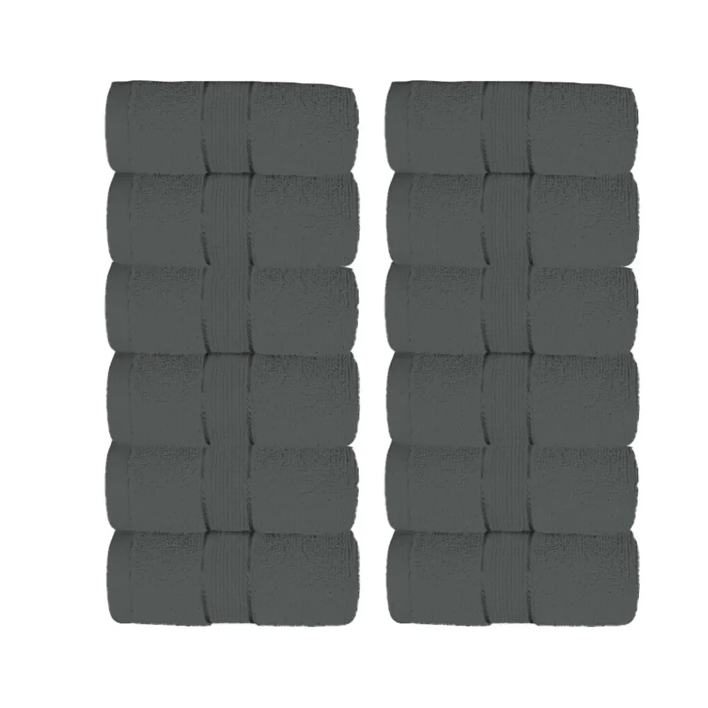 Washcloths Pack Of 12 - 100% Cotton - 600 Gsm Soft & Absorbent, Quick-Drying, For Beach Houses, Hotels, And Rental Properties - Grey