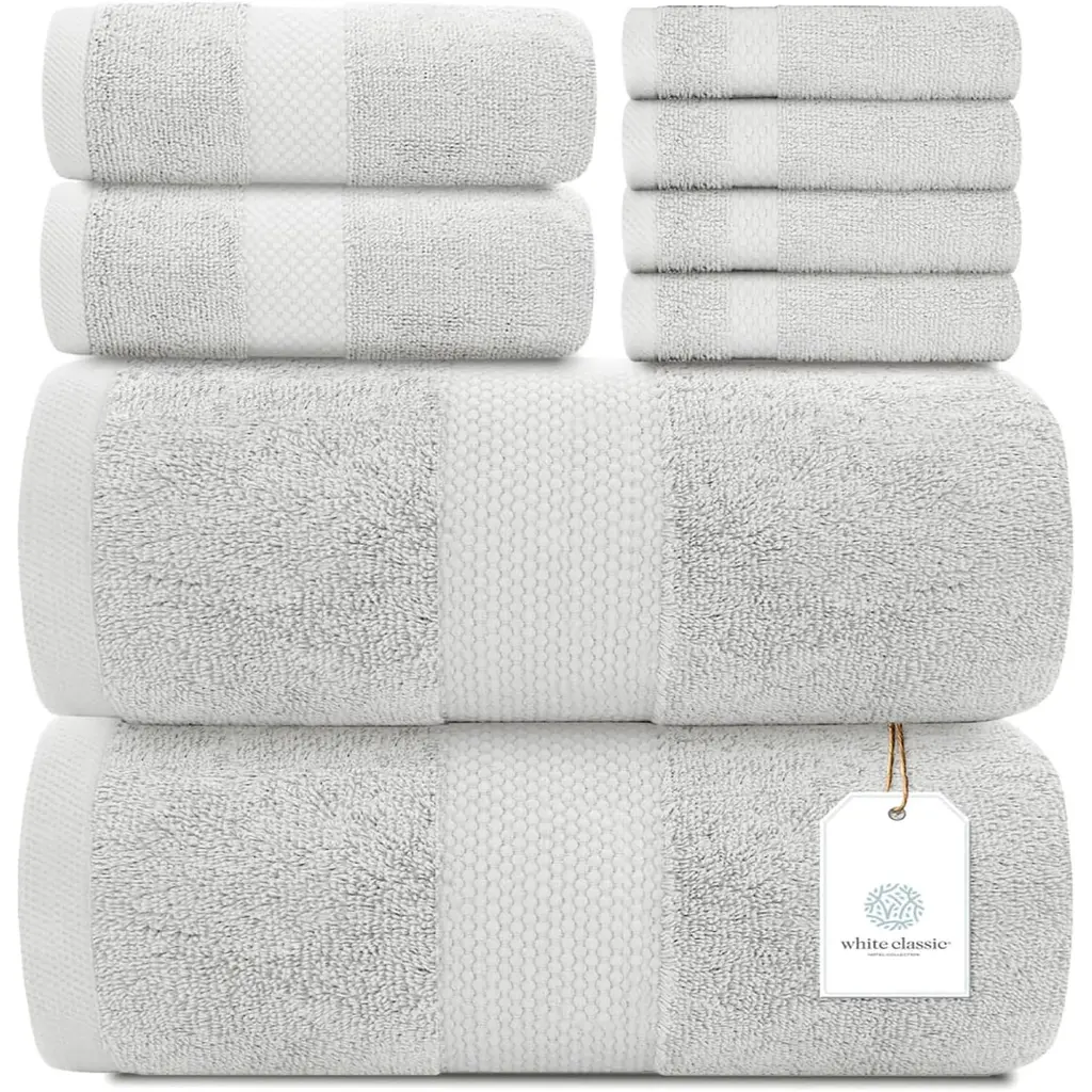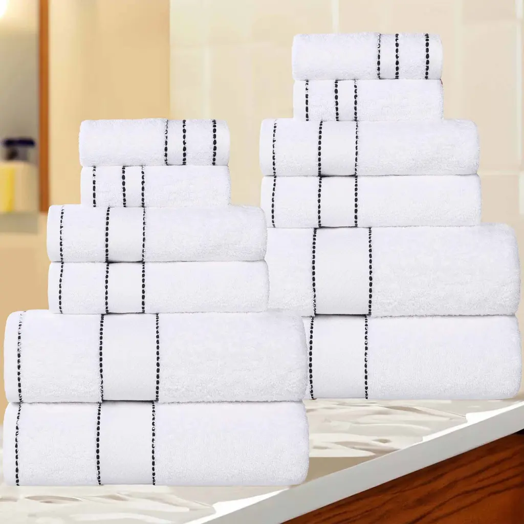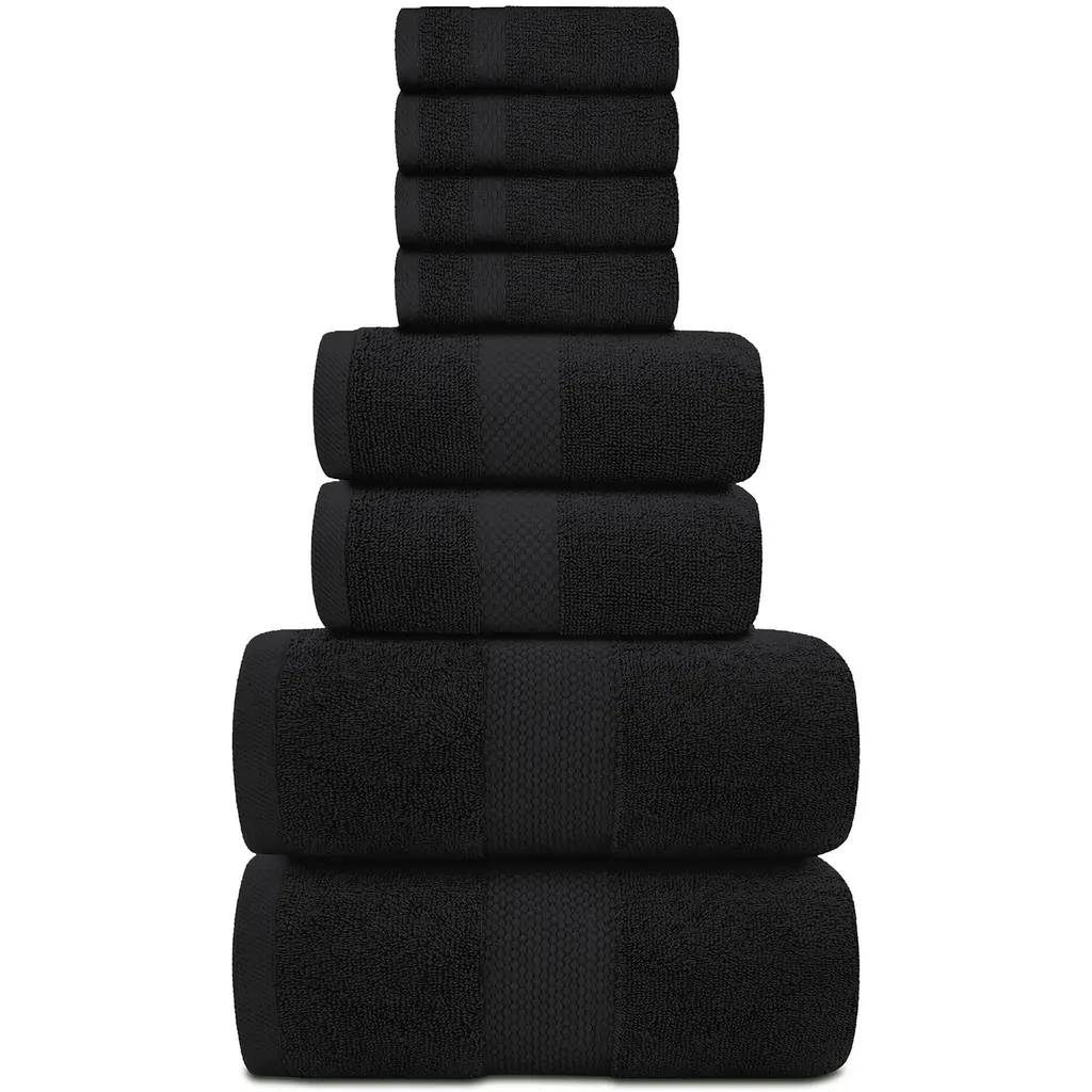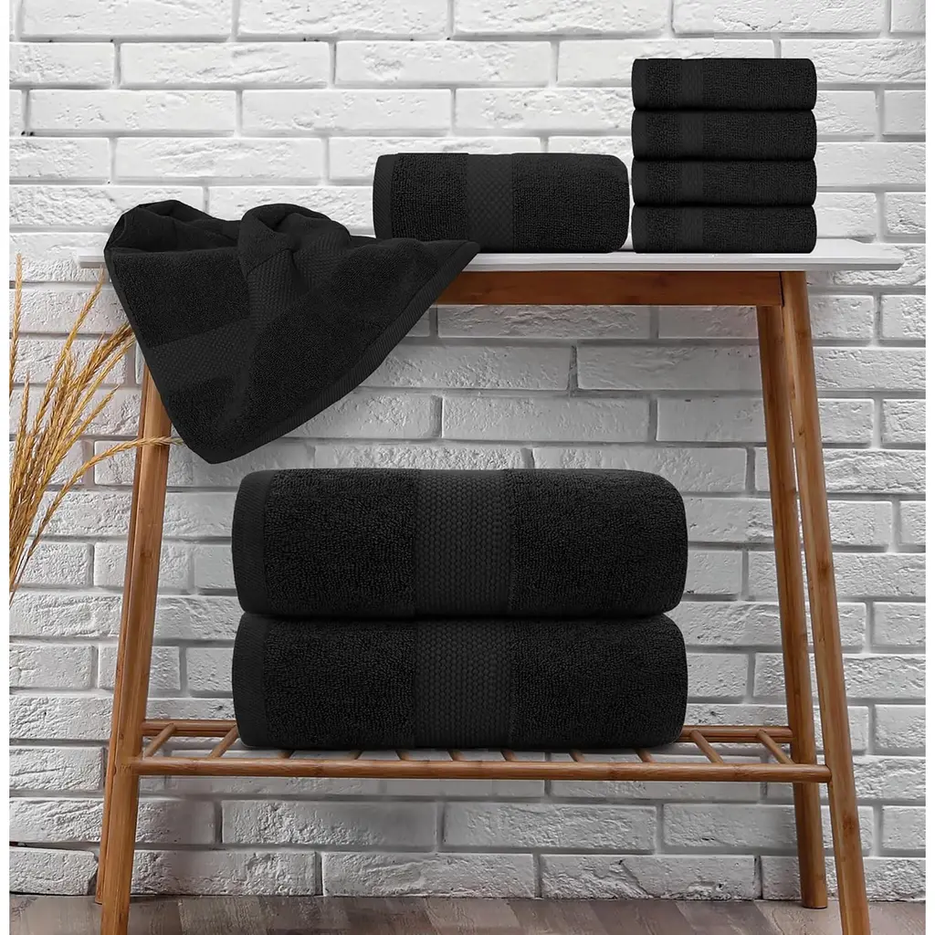 White Classic Luxury Cotton 8Pc Multi Size Towel Set [2 Bath Towels, 2 Hand Towels, 4 Washcloths] - N/a - Black