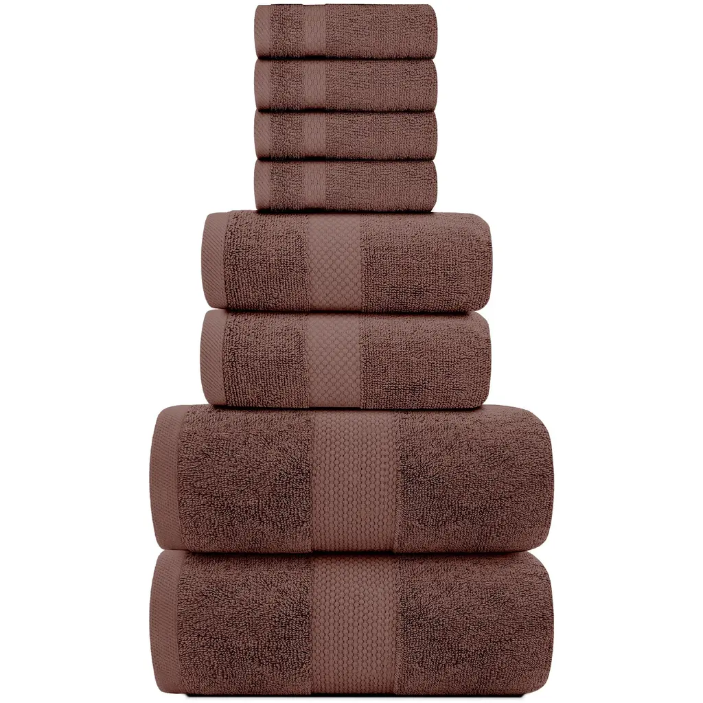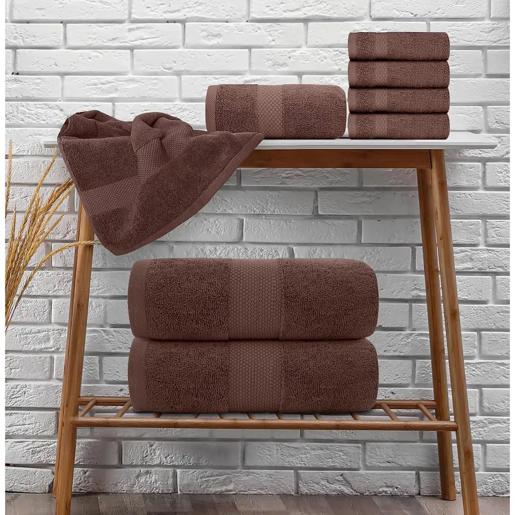 White Classic Luxury Cotton 8Pc Multi Size Towel Set [2 Bath Towels, 2 Hand Towels, 4 Washcloths] - N/a - Brown