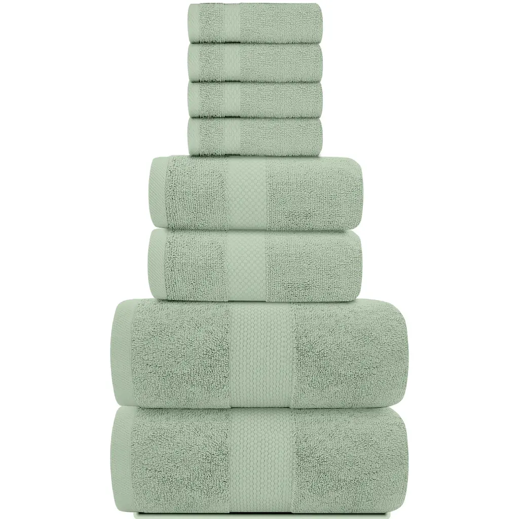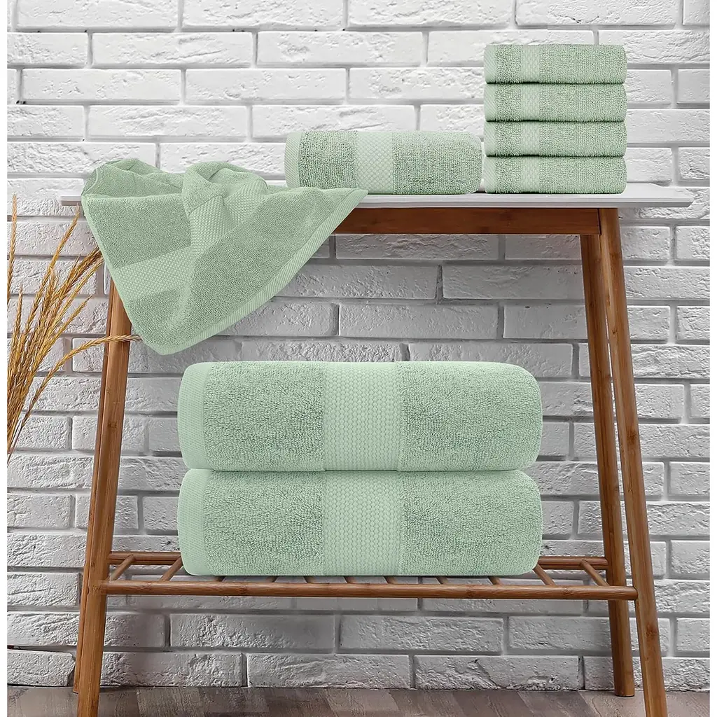 White Classic Luxury Cotton 8Pc Multi Size Towel Set [2 Bath Towels, 2 Hand Towels, 4 Washcloths] - N/a - Green