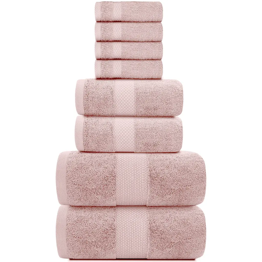 White Classic Luxury Cotton 8Pc Multi Size Towel Set [2 Bath Towels, 2 Hand Towels, 4 Washcloths] - N/a - Pink