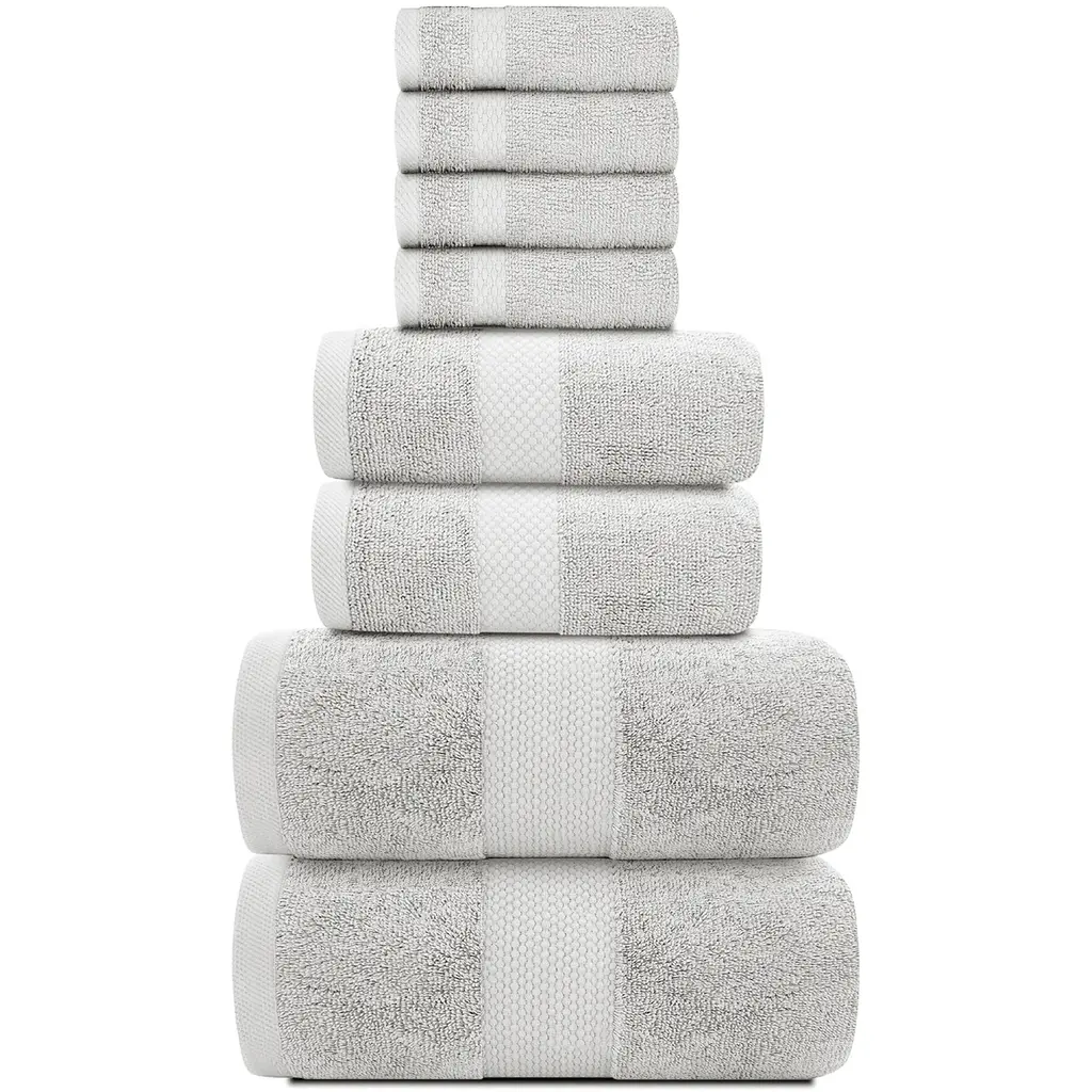 White Classic Luxury Cotton 8Pc Multi Size Towel Set [2 Bath Towels, 2 Hand Towels, 4 Washcloths] - N/a - Silver