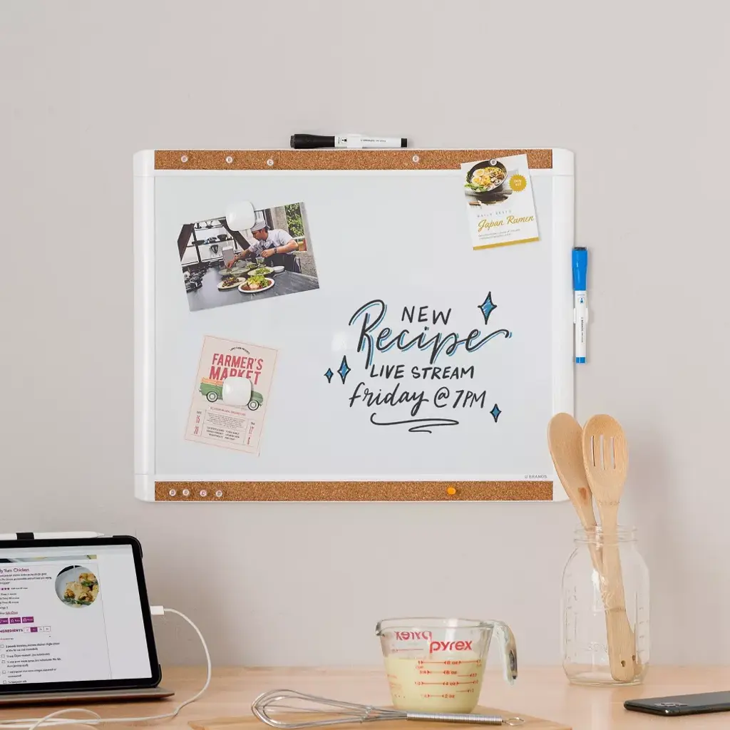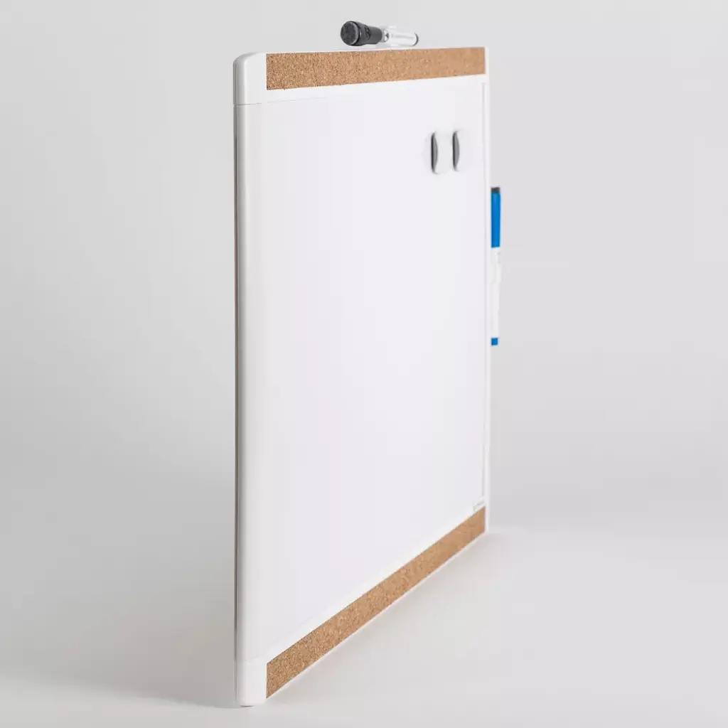 The U Brands® Pin-It Frame Magnetic Dry Erase Board is more than just the average dry erase board. This board does double duty with a magnetic dry erase surface, rimmed with cork for added functionality. The whiteboard is center stage though, and comes with two markers perfect for inspirational quotes or grocery lists. Mount this board on the wall for easy access, and then doodle, magnet, pin, repeat!