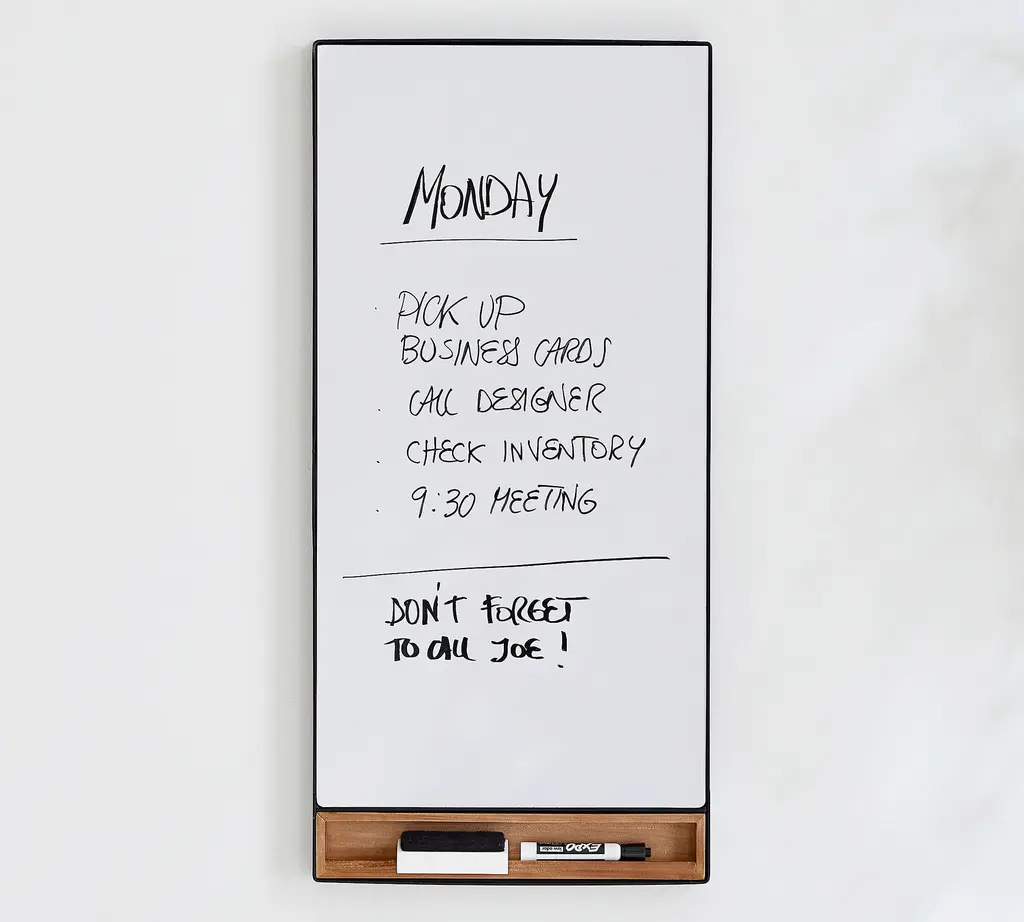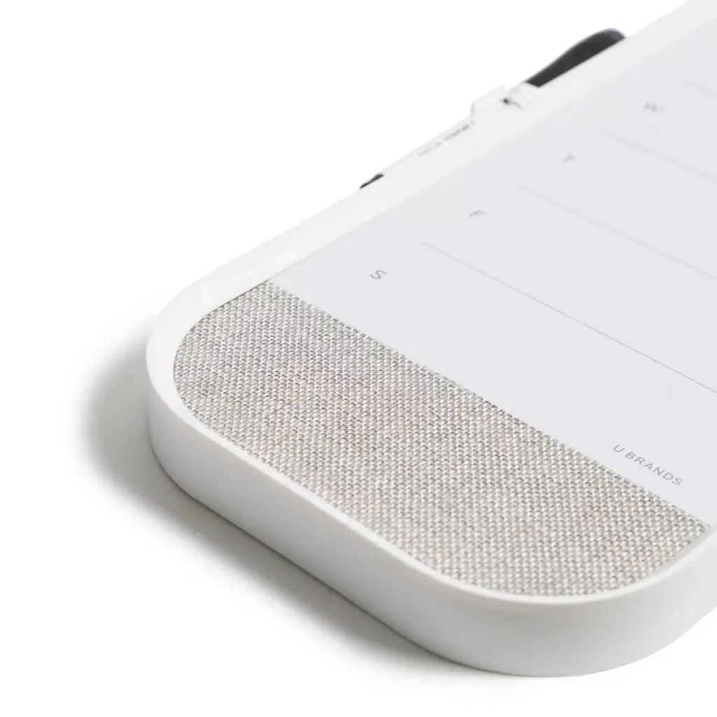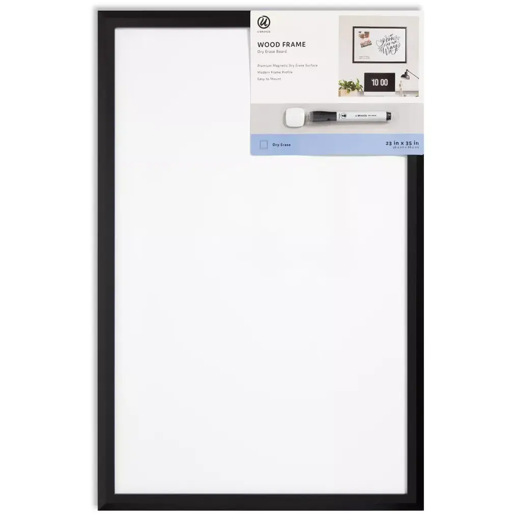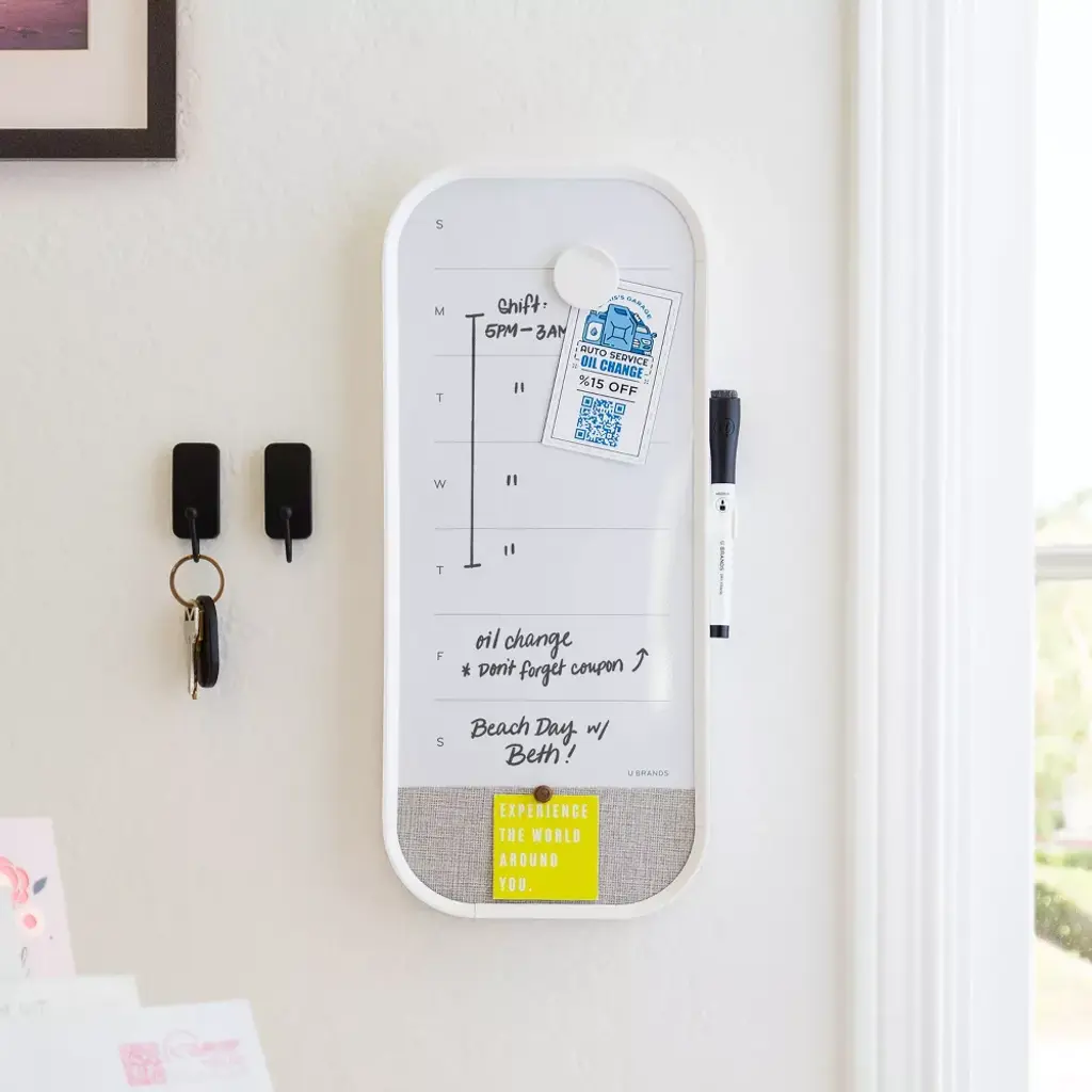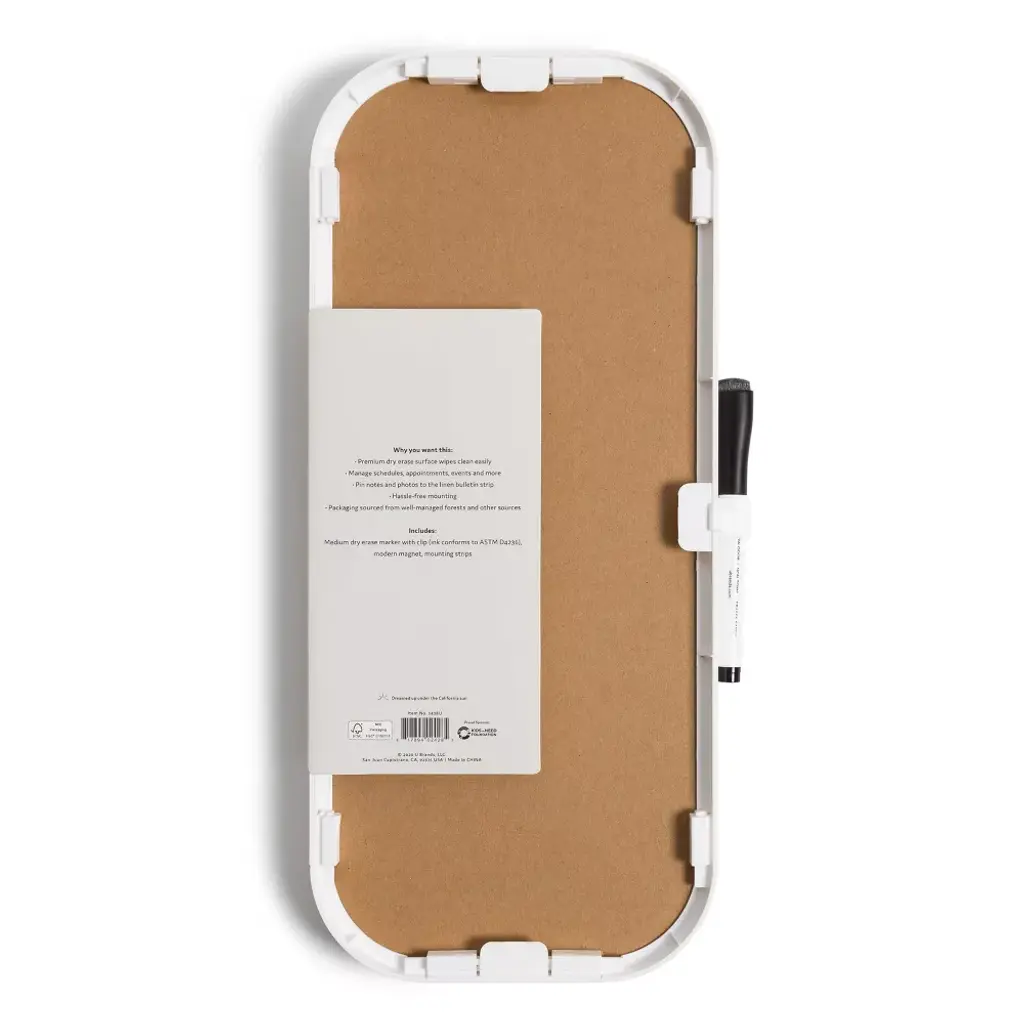 The week ahead never looked so good! This 7” x 16” Modern Bevel Frame Weekly Dry Erase Planner from U Brands® provides everything needed to stay on top of that busy life. The premium steel dry erase surface is framed in an updated plastic profile for a durable and modern look. Fill in the week's activities, events, and notes that simply cannot be forgotten. Use any push pin on the linen bulletin strip to tack up important notes, tickets, photos or whatever it may be to set up for a successful week. The included dry erase marker features a built-in eraser for quick convenient erasing, and the stain resistant dry erase surface allows for frequent use week after week.