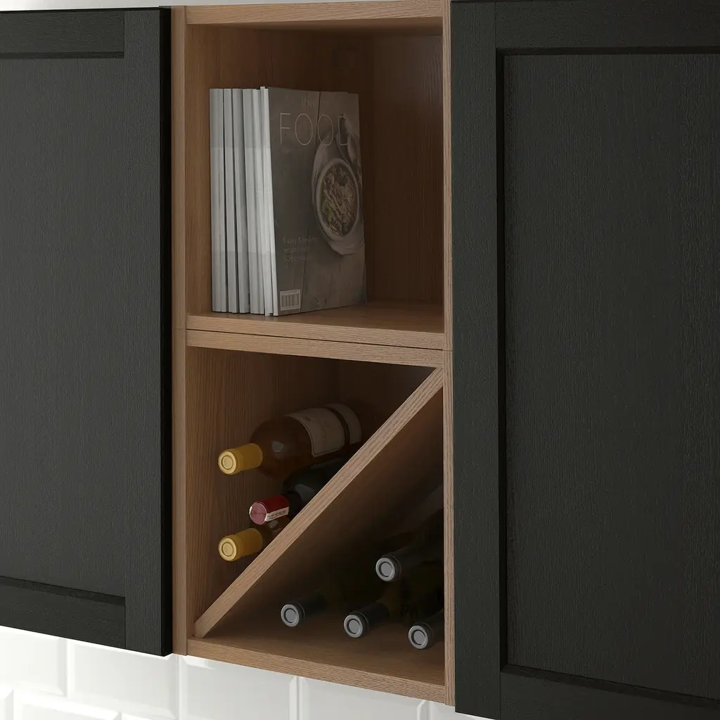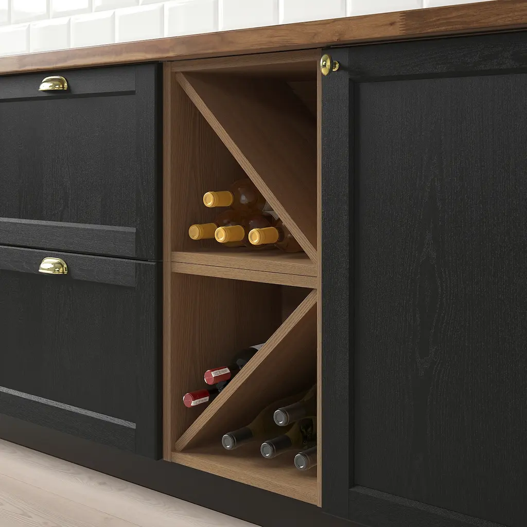 VADHOLMA Wine shelf - brown/stained ash 15x14 3/8x15 ". Makes the contents of the cabinet easy to view and access. An open kitchen cabinet which is suitable for storing bottles so that they are easy to see and reach. 10-year Limited Warranty. Read about the terms in the Limited Warranty brochure.