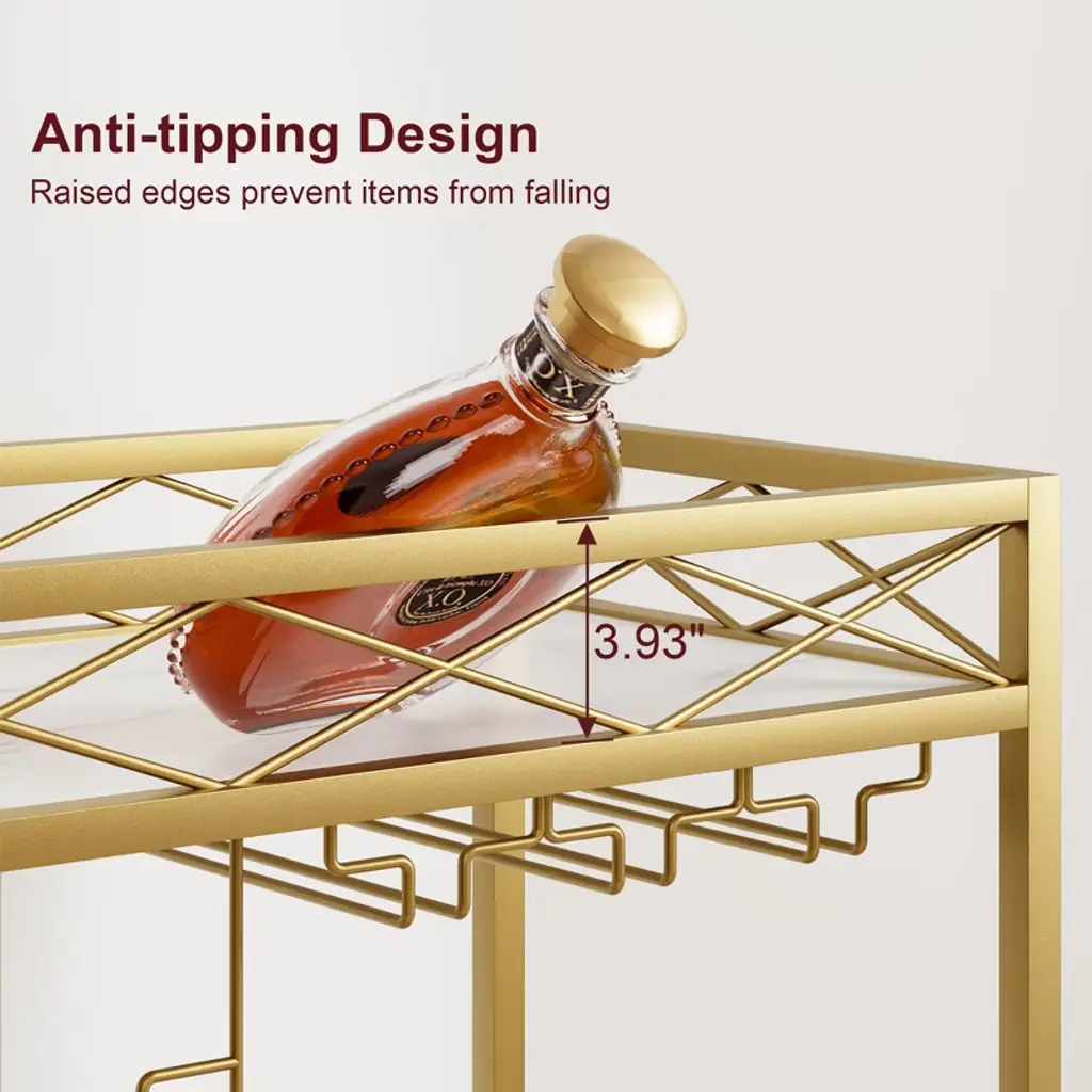 2-tier Rolling Cart With Wine Rack & Glass Holders - Stylish Food Delivery & Serving Cart For Living Room, Kitchen, Dining Room - Functional Storage