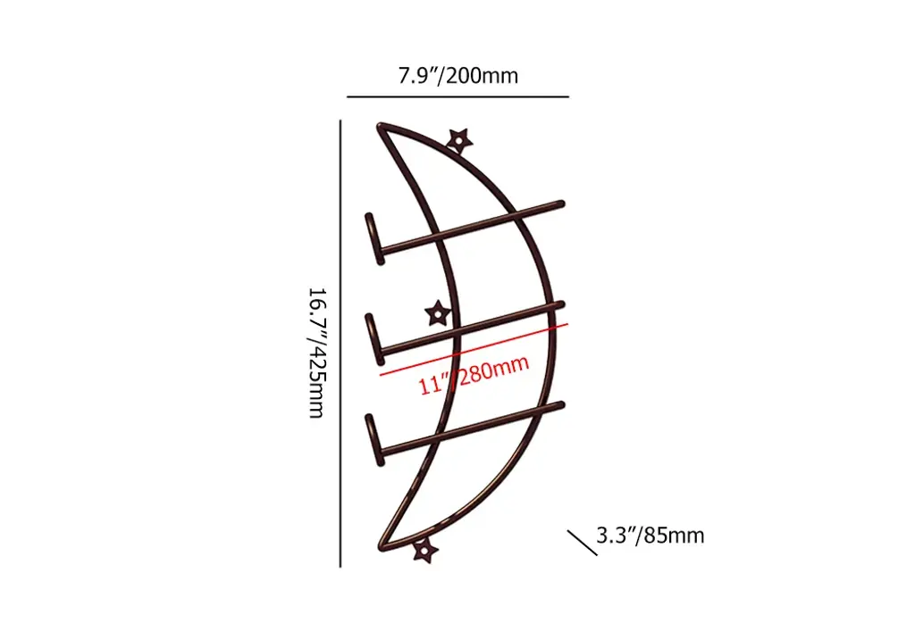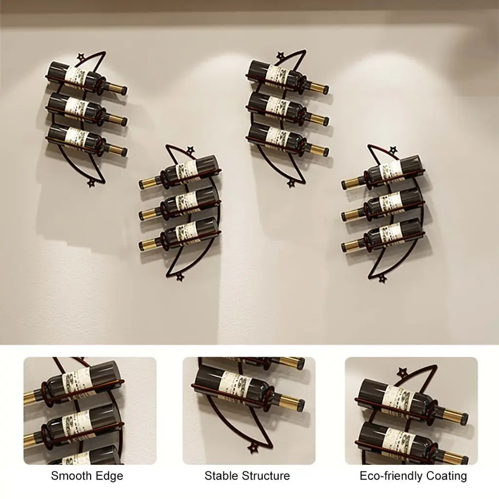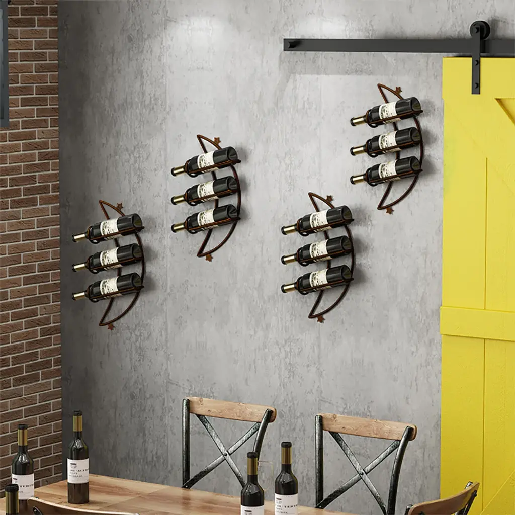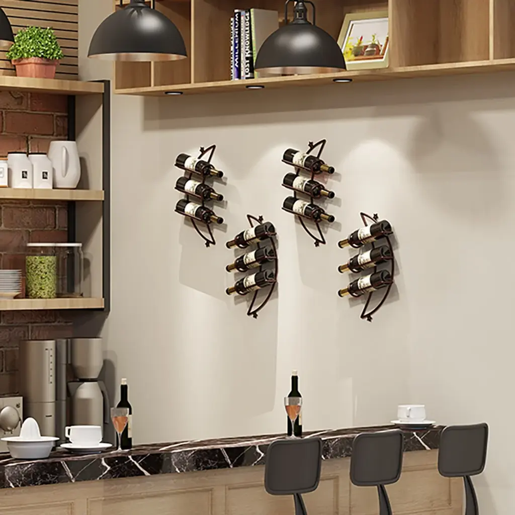 4 Pieces 12 Bottles Moon Shaped Metal Wine Rack Wall Mounted In Bronze