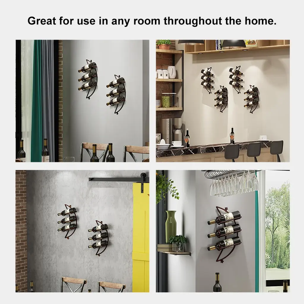 This product is a bronze wall-mounted wine rack for up to 12 wine bottles. It is designed to save space while making your home look fancy and elegant. This beautiful wine wall rack will turn any room into a work of art. It would be a perfect wine rack for your kitchen, dining room, bars, corridors, stairwells, foyer, or wherever you want.