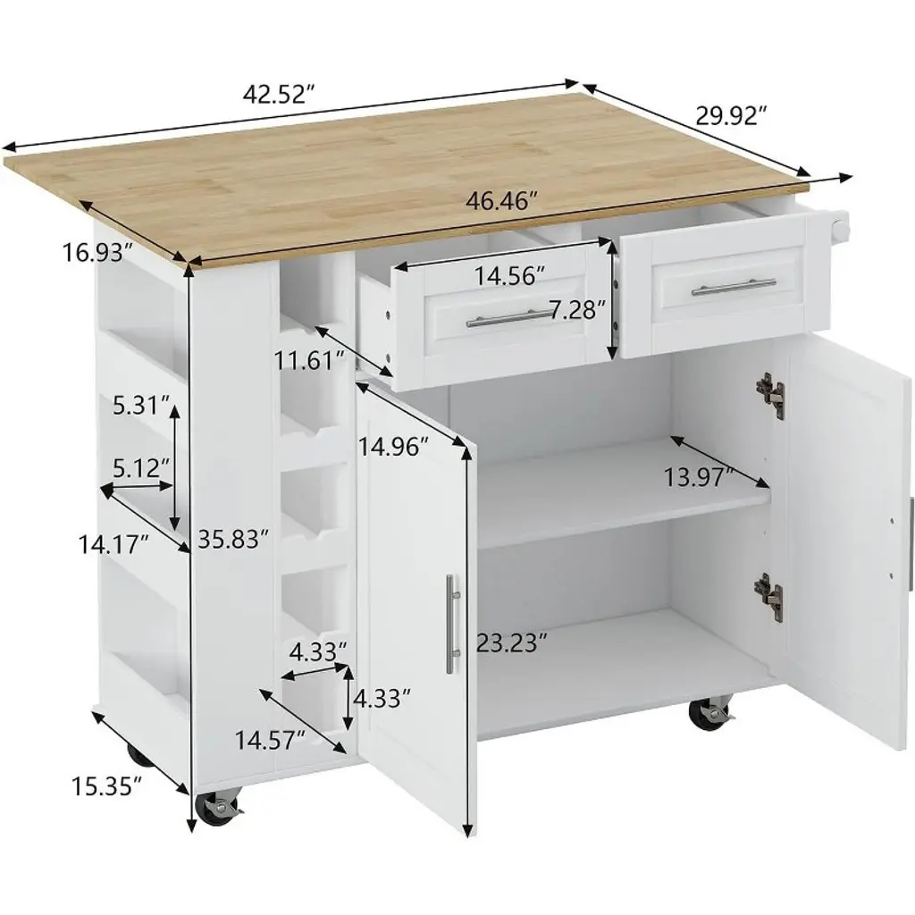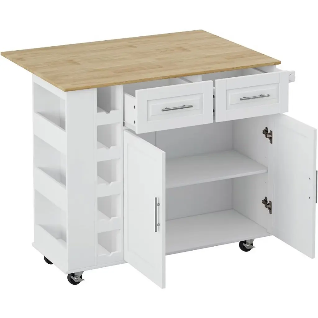 Acekool White Kitchen Island Cart With Wine Rack & Foldable Top – 2-door Cabinet, 2 Drawers & Spice Storage