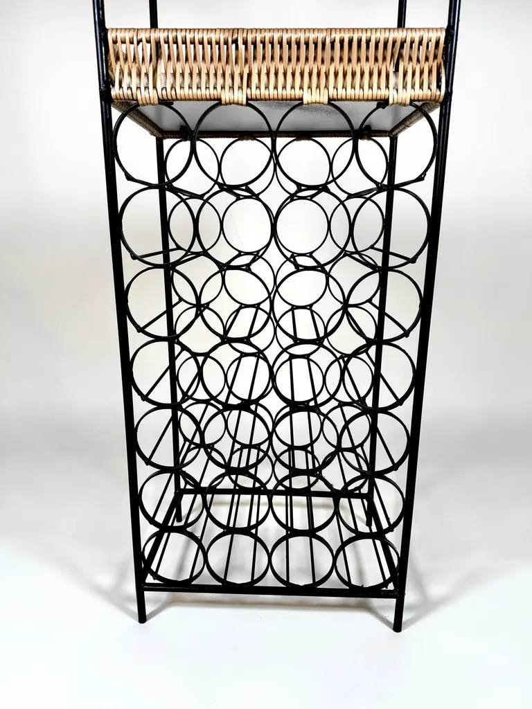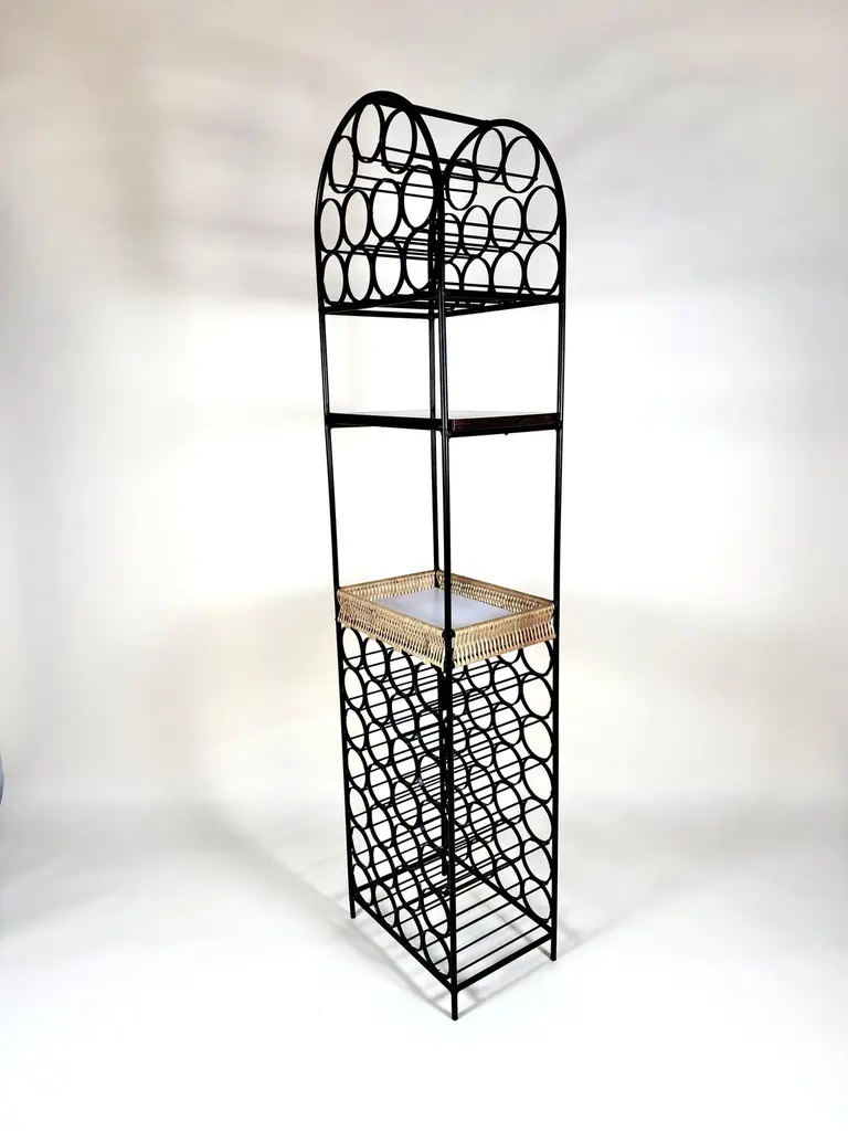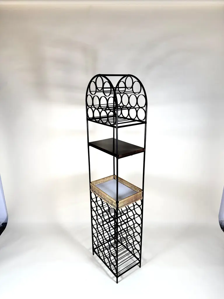 Arthur Umanoff Iron & Rattan Wine Rack With Shelves