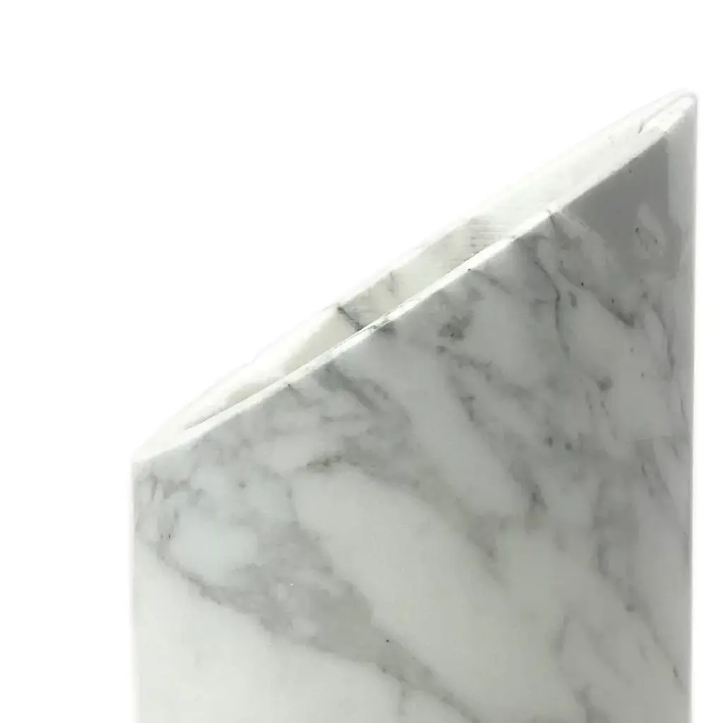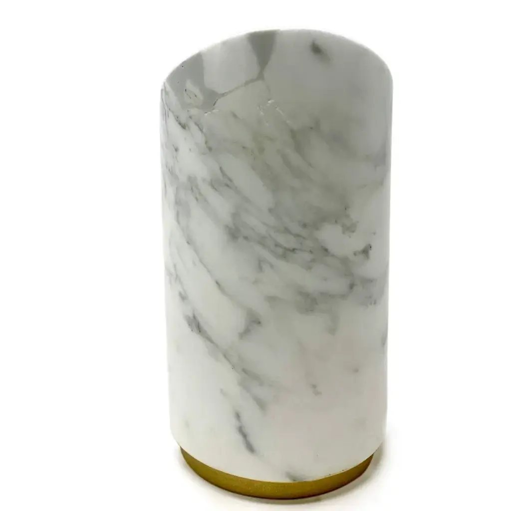 The Brass bottle rack, made entirely of marble, is an exclusive Calacatta Oro bottle rack embellished with a gold finish at the base, giving the latter an additional touch of refined style. The Brass bottle holder is part of the new Brass collection, made through the reuse of different types of natural stones. Sustainable design is proposed through these items to add a touch of elegance and sophistication to the dining room or office. Made entirely from residual materials from other projects, the Brass collection, created in collaboration with designer Cristina Romanello, consists of exclusive trays, underplates, cutting boards, cutlery trays, drink coasters and pen holders conceived to give more class and elegance to the dining table or office. Variations in color or slight imperfections are the result of the craftsmanship of this article and are not to be considered defects.