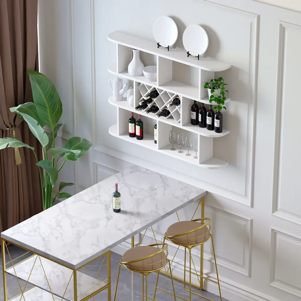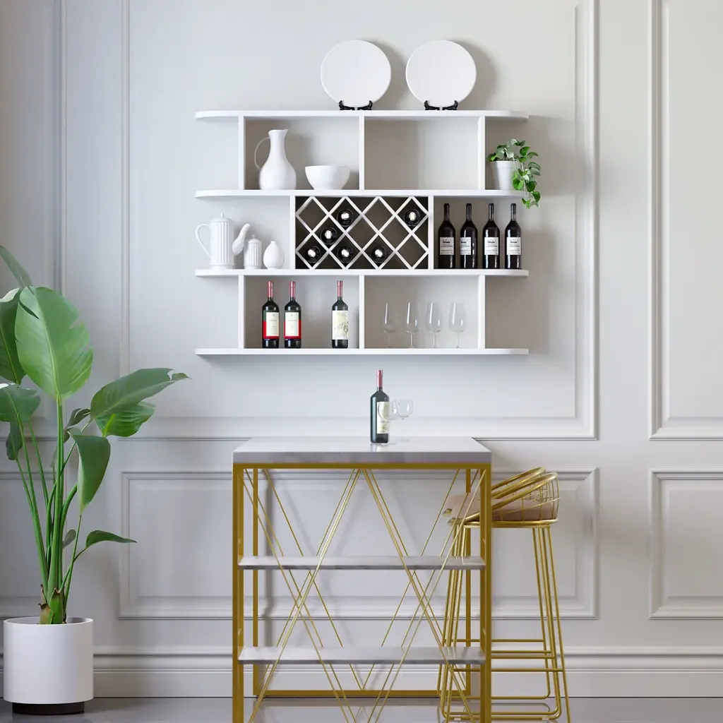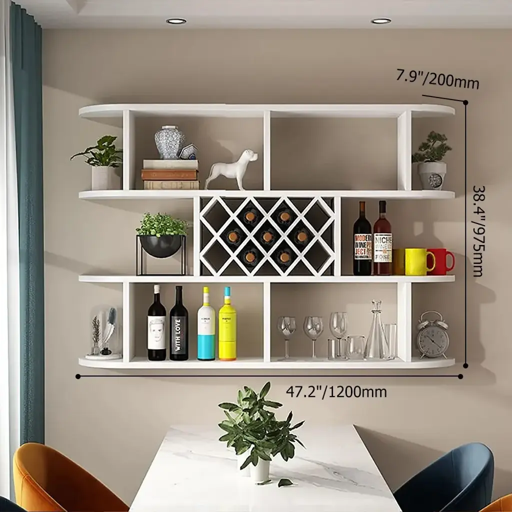 This wine rack is adorned with delicate details for a look that spells out contemporary. With space for up to 11 bottles, it features a rectangular design founded on wall mount hanging. Keep it atop your dining room wall filled with a few of your favorite vintages wine, that way you're ready to pour out drinks at your next dinner party or just as a decoration in a dining room. This piece is a charming finishing touch. Keep it centered on a blank wall along with a variety of worthy bottles so you can craft an even more relaxing atmosphere.