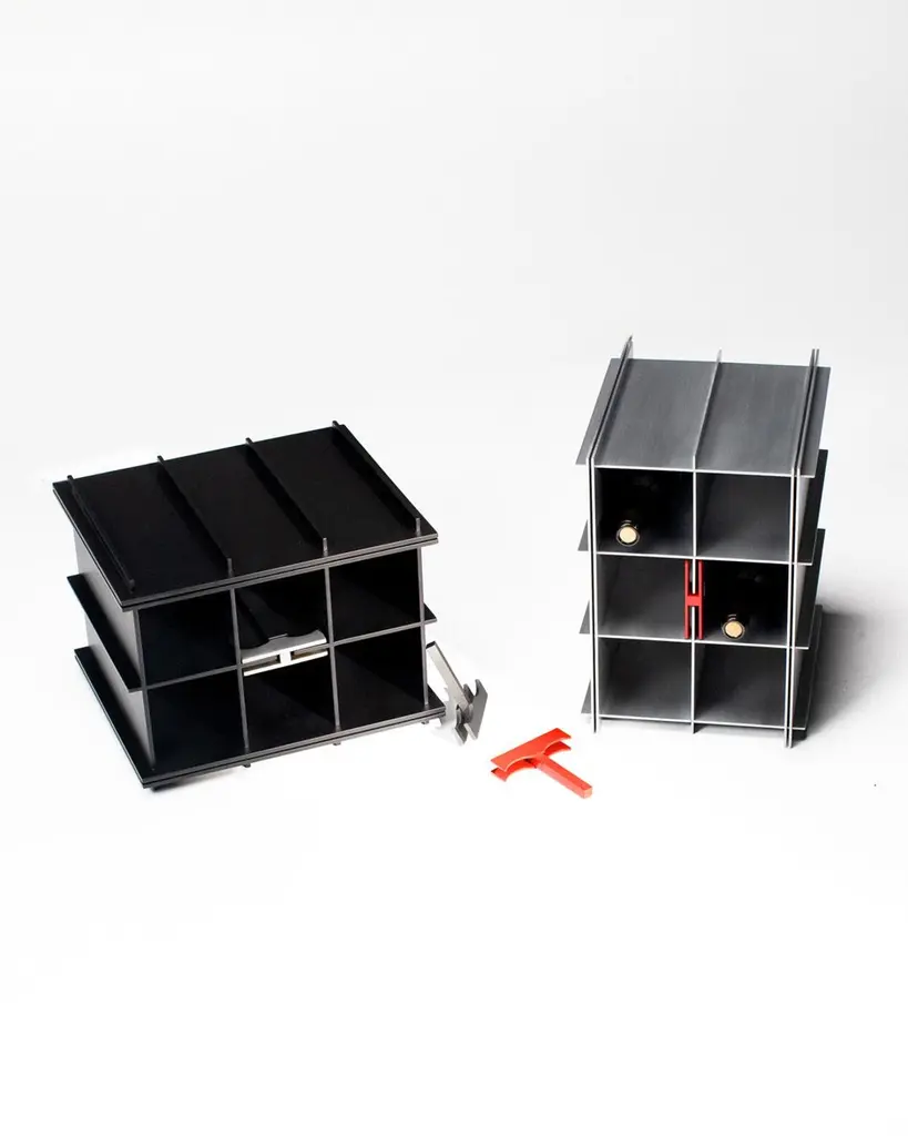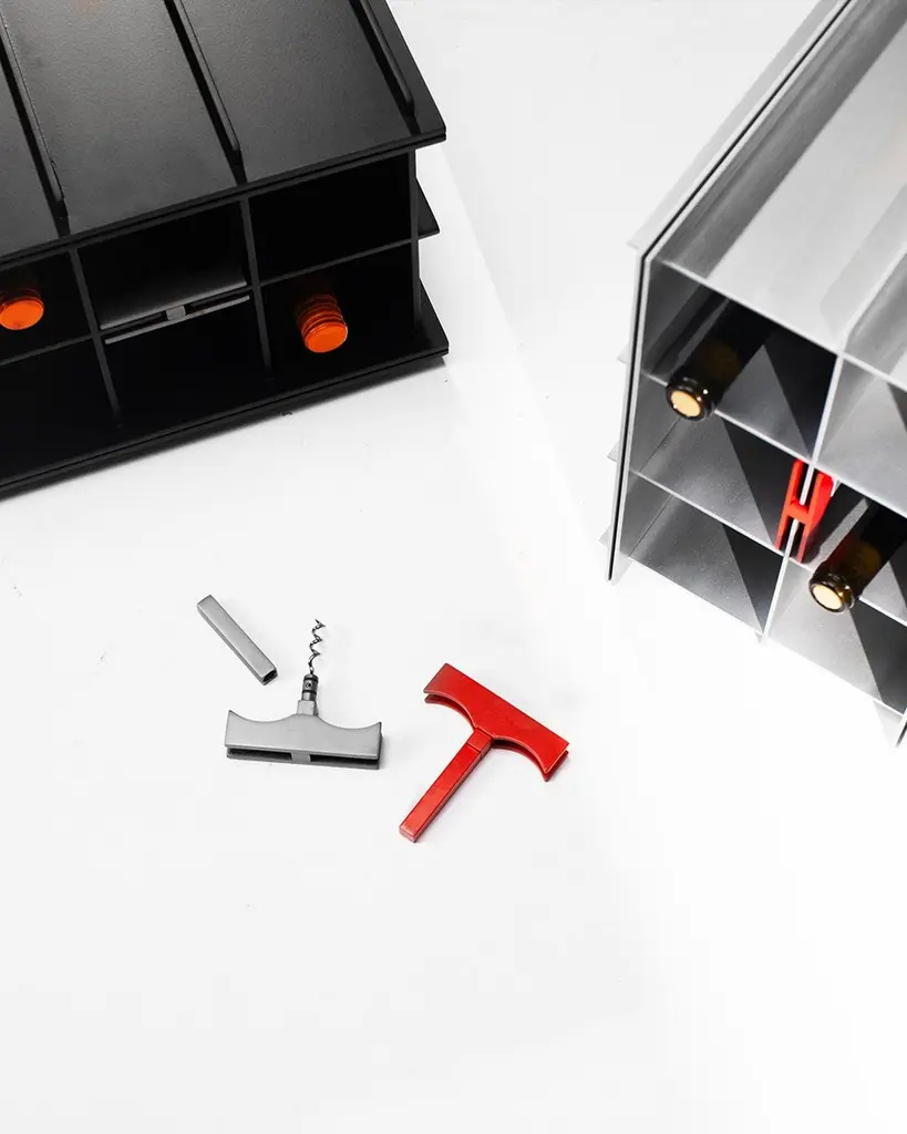 Introducing the "Core" Wine Rack & Corkscrew, that created especially for the wine enthusiasts! At first glance, the Core wine rack exudes a sense of structural order with its clean lines. However, contrast-colored corckscrew is the heart of this wine rack that truly sets it apart. Wine rack begins as a harmonious grid of four horizontal and one middle vertical stainless steel panels. As a following step, two vertical panels with a gap on either side coming together to house 6 bottle of wines – a subtle nod to the collection's signature element repeated throughout the theme. Nestled within the middle section lies a captivating surprise – two perfectly placed corkscrews adorning the front and back sides. Positioned at the heart of the shelves, it becomes the soul of the wine rack, echoing the vivacity and spirit of the collection itself. Raise your glasses to the collective moments!
