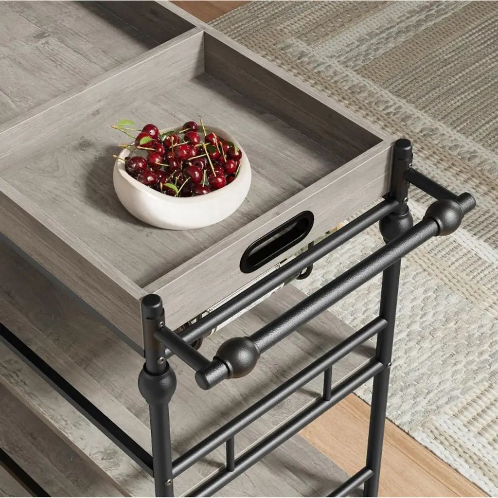 Elevate your home entertaining with this stylish industrial bar cart, designed to keep your drinks and essentials organized while adding a modern touch to your space. With its sleek gray finish and robust construction, this cart effortlessly blends function and fashion, making it perfect for your kitchen, dining room, or living area. You¡¯ll love how easily it moves around thanks to smooth-rolling wheels, so you can serve guests anywhere without a hassle. The built-in wine rack and stemware holder keep your favorite bottles and glasses secure and within reach, while the removable tray makes serving and cleaning simpler than ever. Whether you¡¯re hosting a party or enjoying a quiet evening, this cart is your go-to solution for stylish and practical storage.