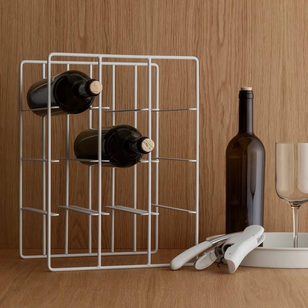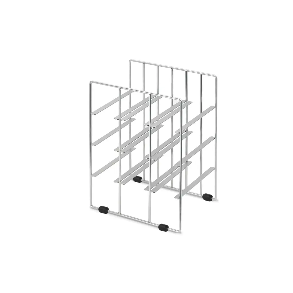 The Blomus Countertop Wine Rack combines modern design with practical functionality, offering a sleek solution for storing and displaying your favorite bottles. Crafted from high-quality stainless steel, this minimalist wine rack fits seamlessly into contemporary kitchens, dining areas, or living spaces. Its vertical design holds up to six standard 750ml bottles while saving valuable counter space. Designed for durability, the stainless steel construction ensures a sturdy, rust-resistant frame that lasts. Easy to assemble, this wine rack is perfect for showcasing wine, champagne, or even bottled beverages like sparkling water. Compact yet elegant, the Blomus Countertop Wine Rack makes a thoughtful gift for wine enthusiasts and a stylish addition to any home.
