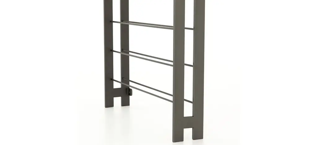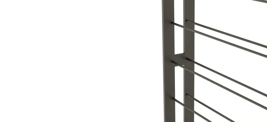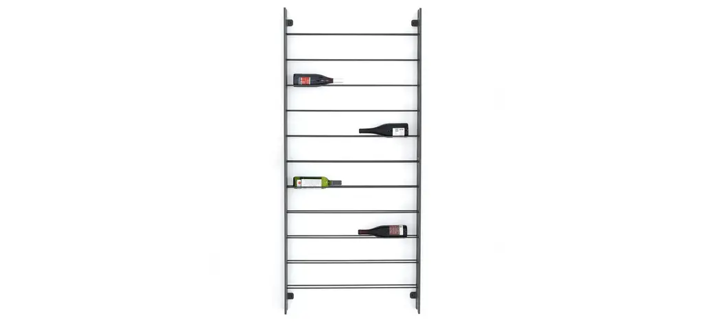 Store and sip in style. This tall, wall-mountable Galloway wine rack is finished in gunmetal, with open shelving for proper storage and stylish display of favorite wines. Anchors included.