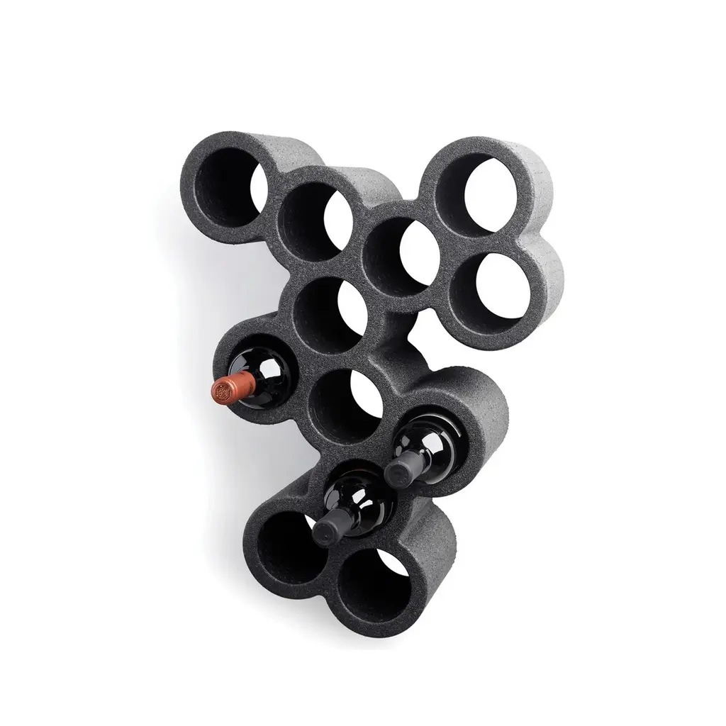 Grape Wine Rack is made of a very strong yet super-light material. There can be stored wine bottles, but also most champagne bottles will fit. Several units can be grouped together to create a larger rack and is wall mountable. The Grape is packed in a nice carry trunk.