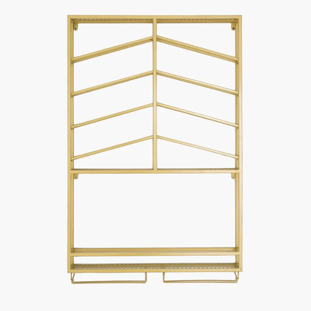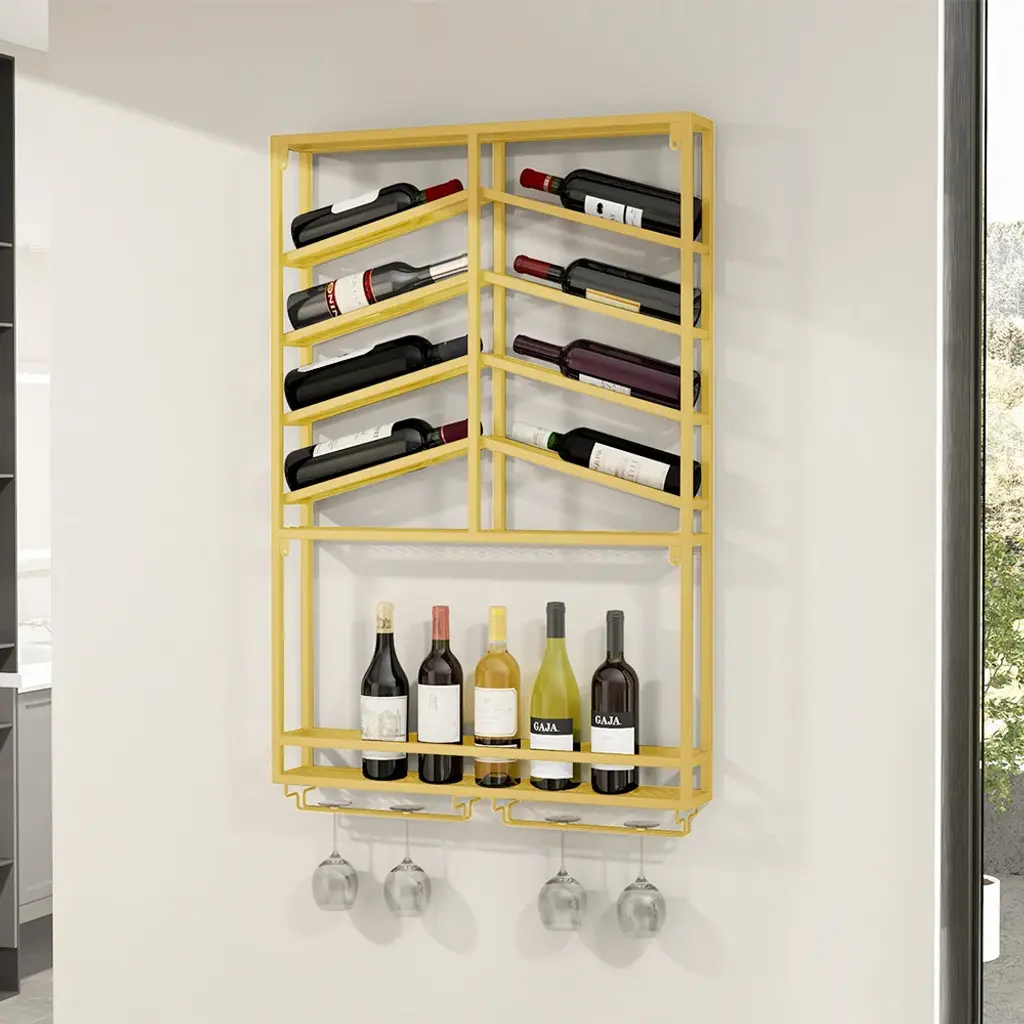 Industrial Metal Wall Mounted Gold Wine Rack With Glass & Bottle Rack
