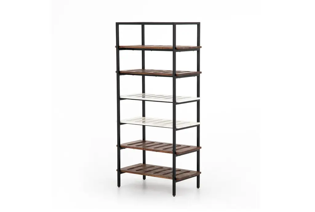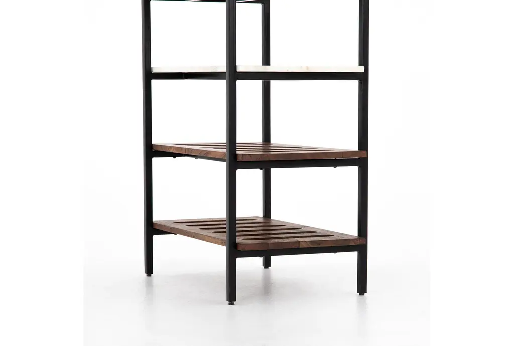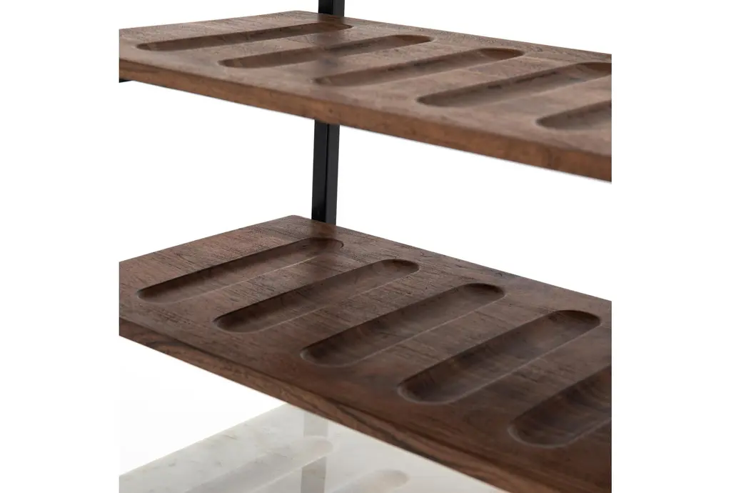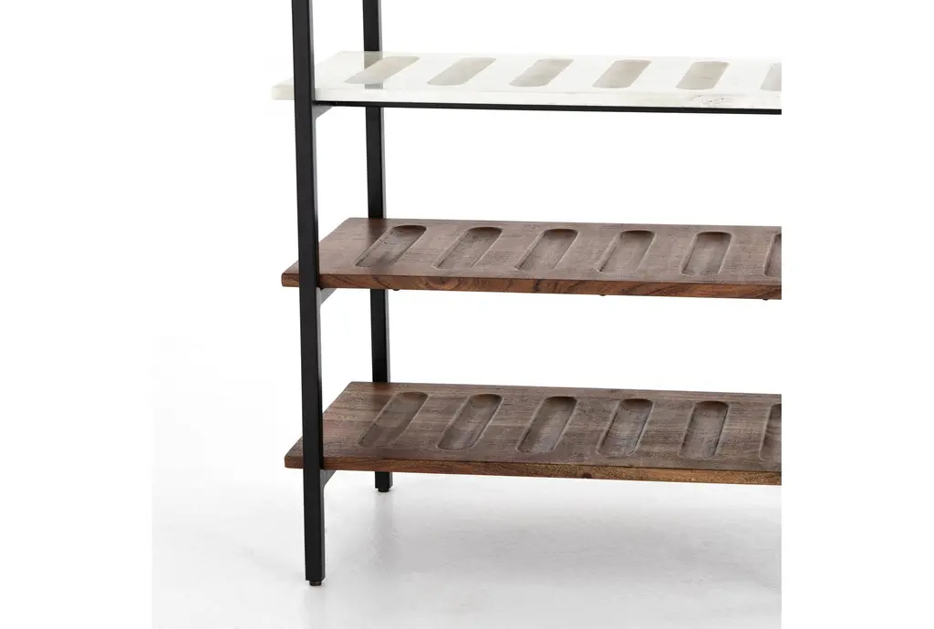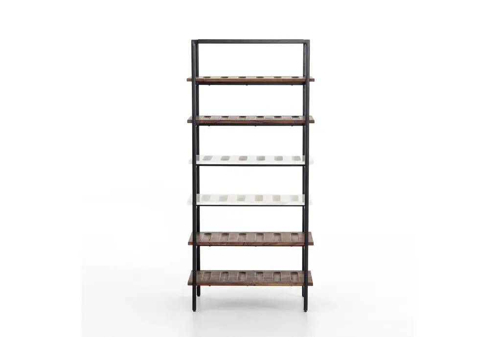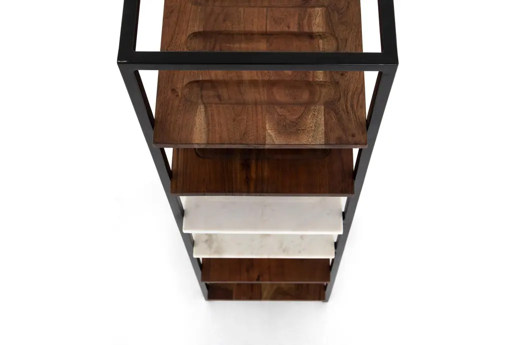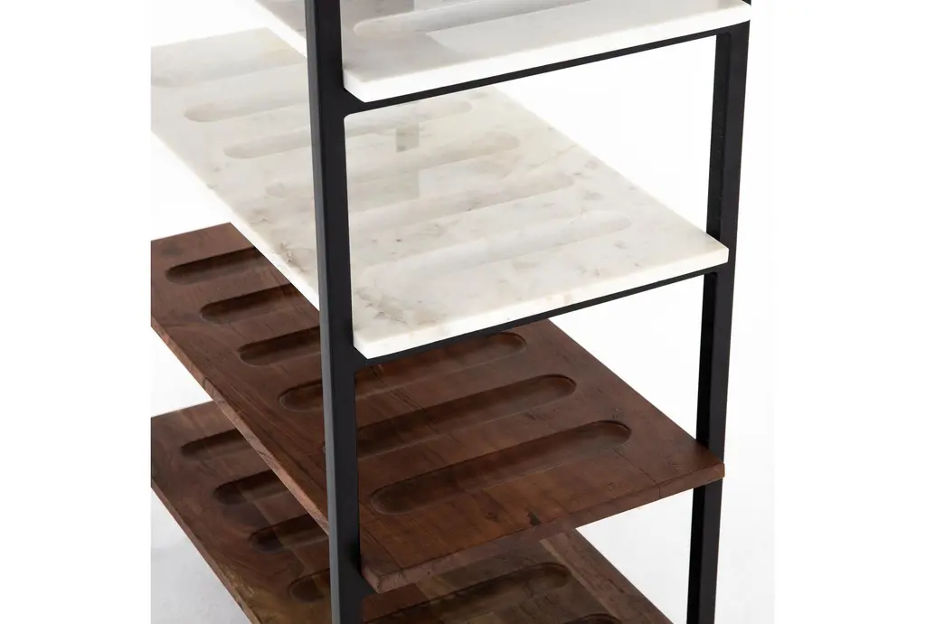 Metal Frame Wine Rack With Acacia + Marble Shelves