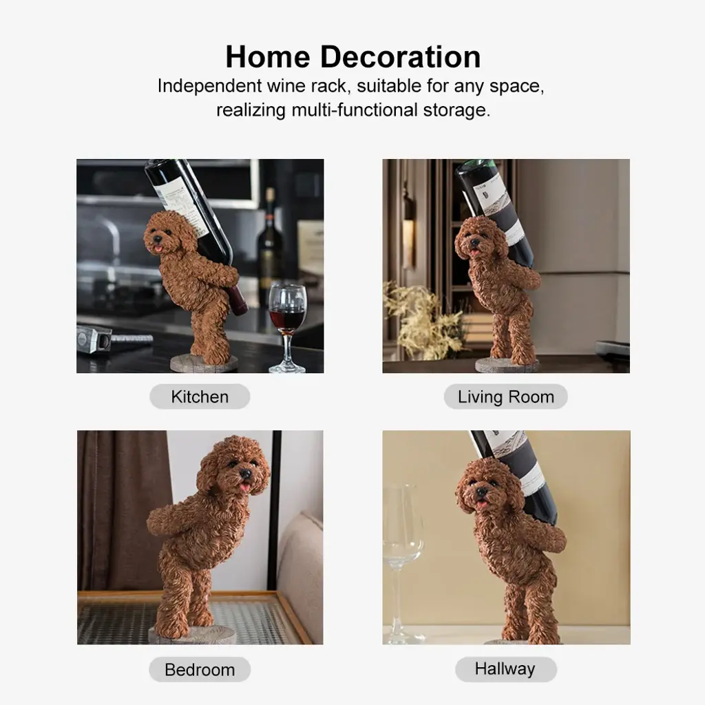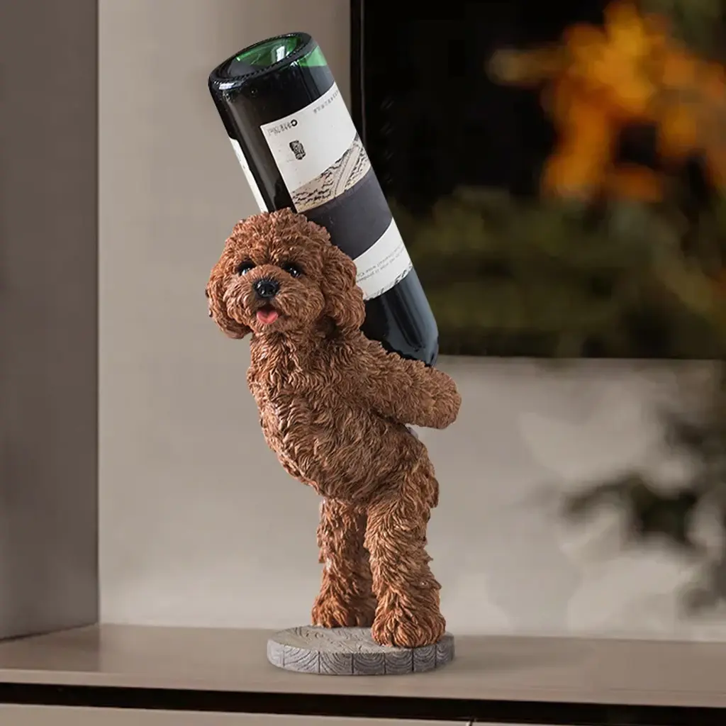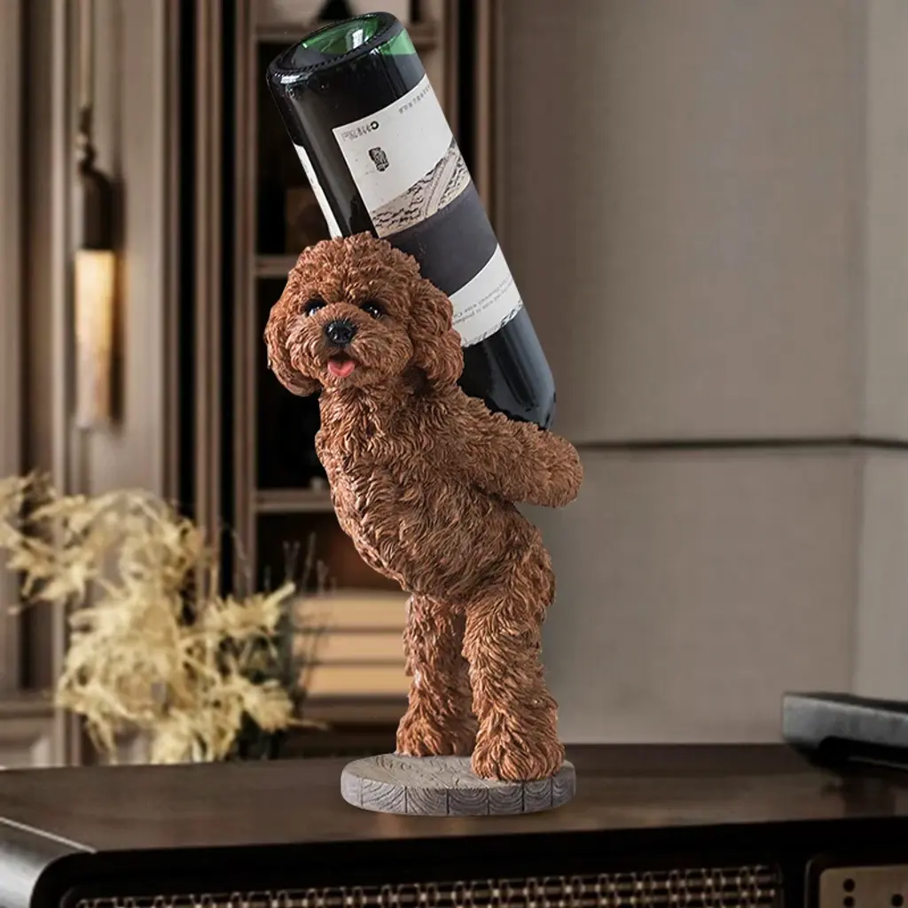 Modern Wine Rack Brown Resin Teddy Dog Decorative Countertop Wine Bottle Holder