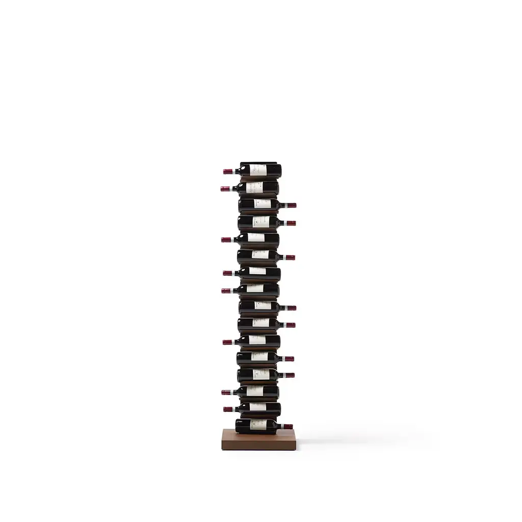 This elegant wine bottle holder is a luxurious upgrade to a classic wine rack. A self standing wine rack made entirely of steel, available in two different sizes. Showcase your finest bottles in the selfstanding shelf in an iconic contemporary design. It is the perfect solution for every space where wine is a passion.