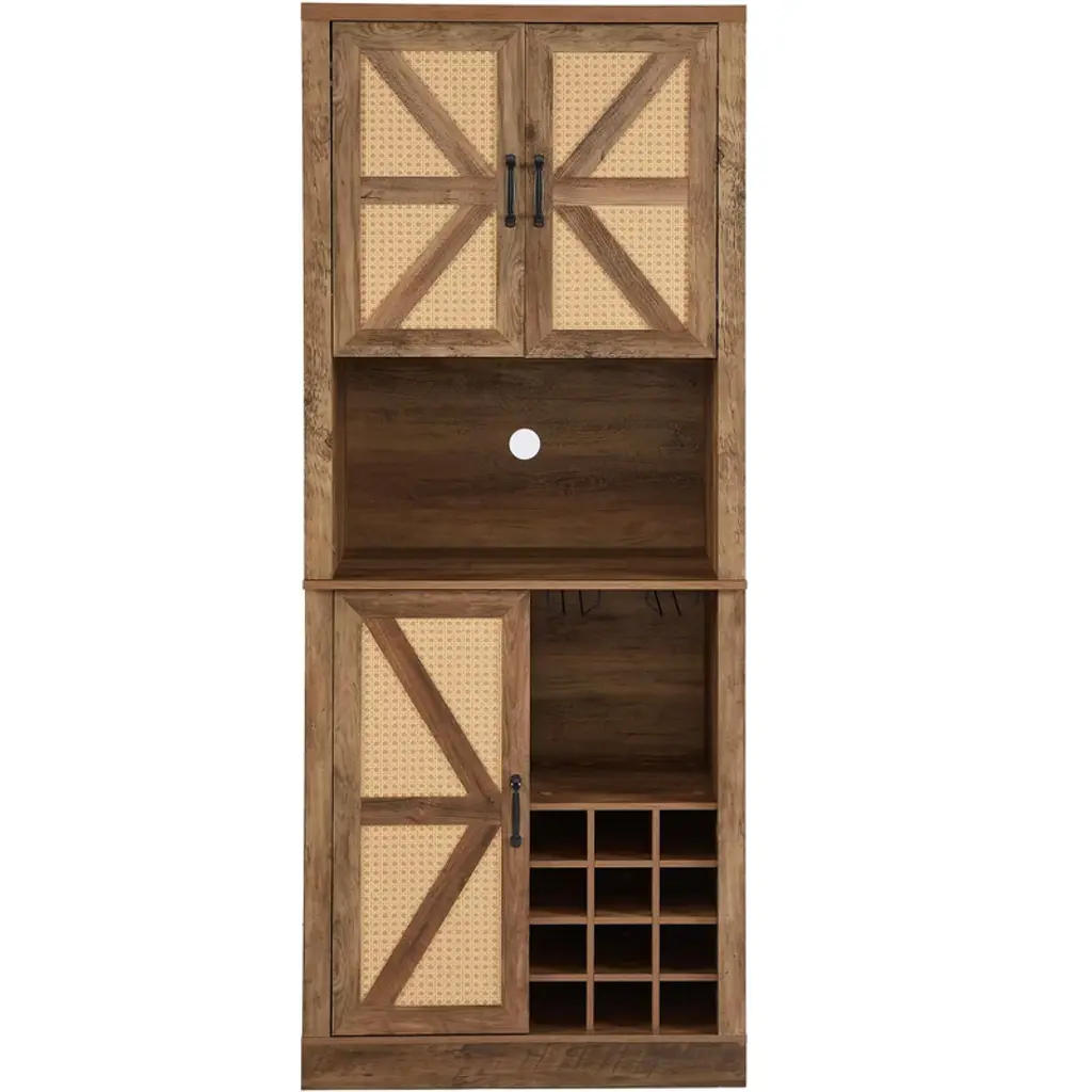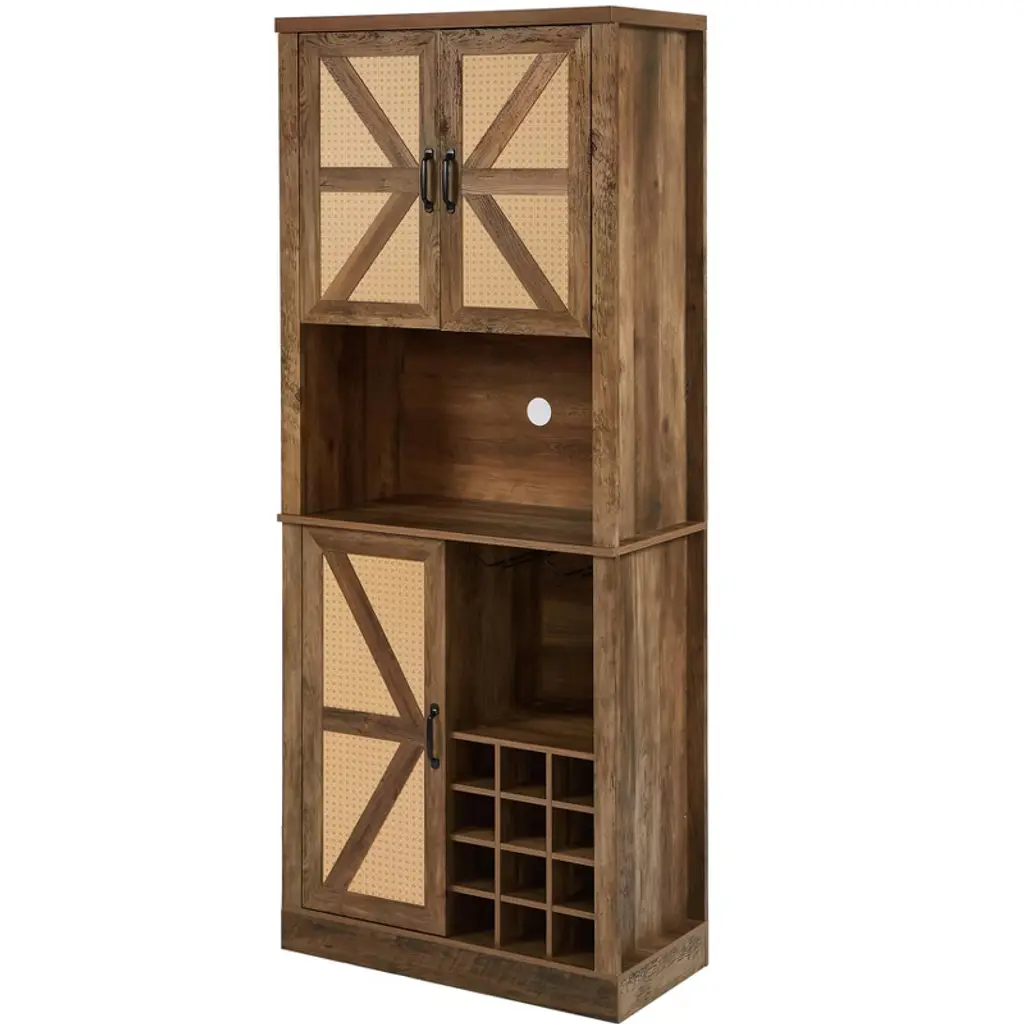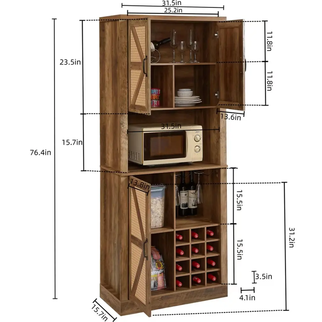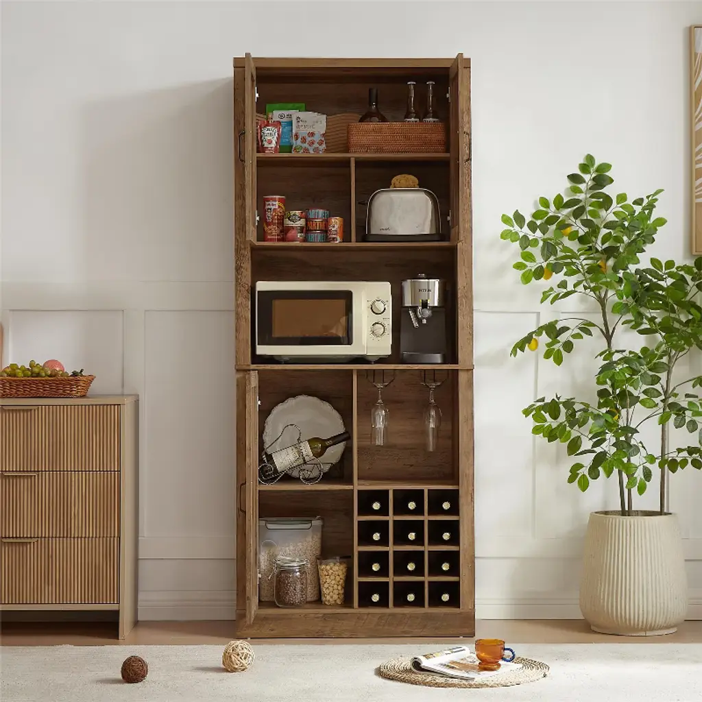 Sevobal Decorative Storage Cabinets, Multi-functional Kitchen Storage, Charm To The Kitchen, Built-in Rack, Brown, 31.5*15.7*76.4